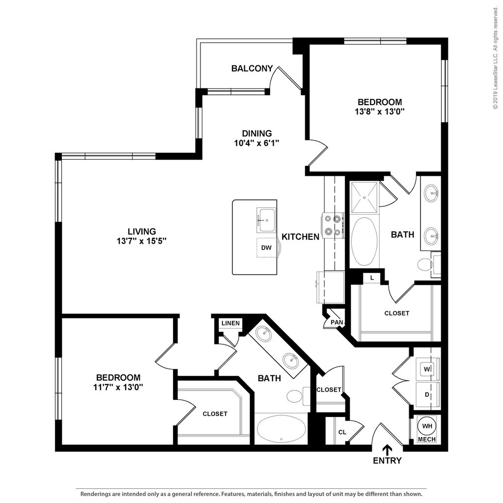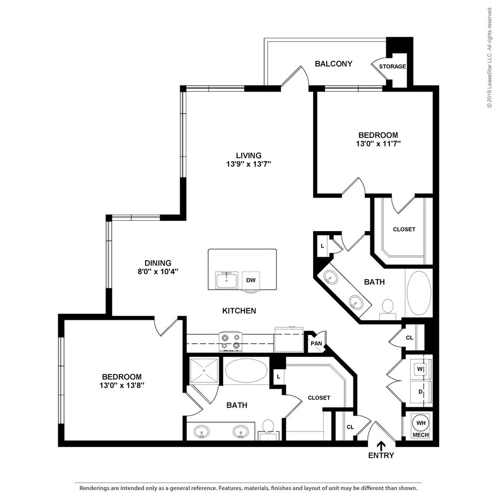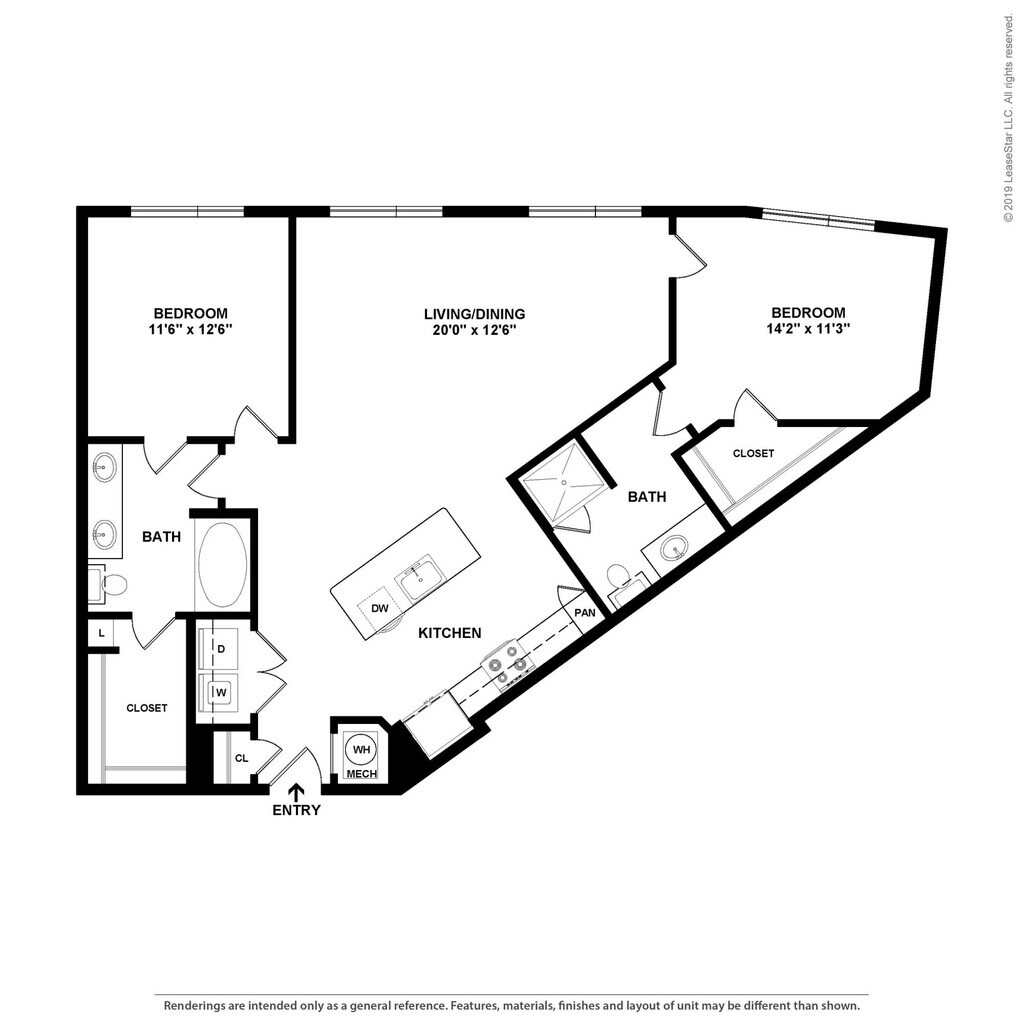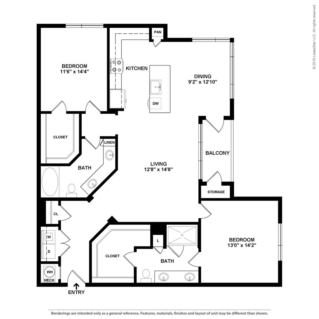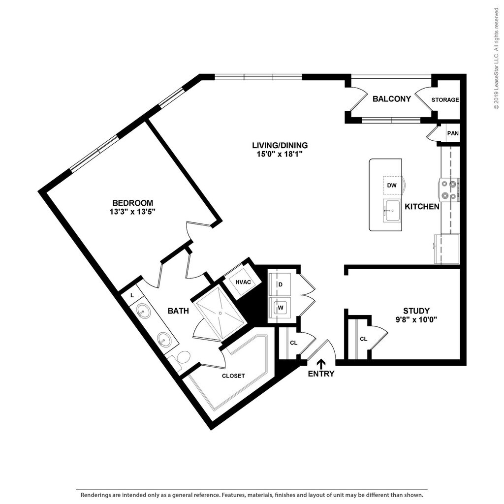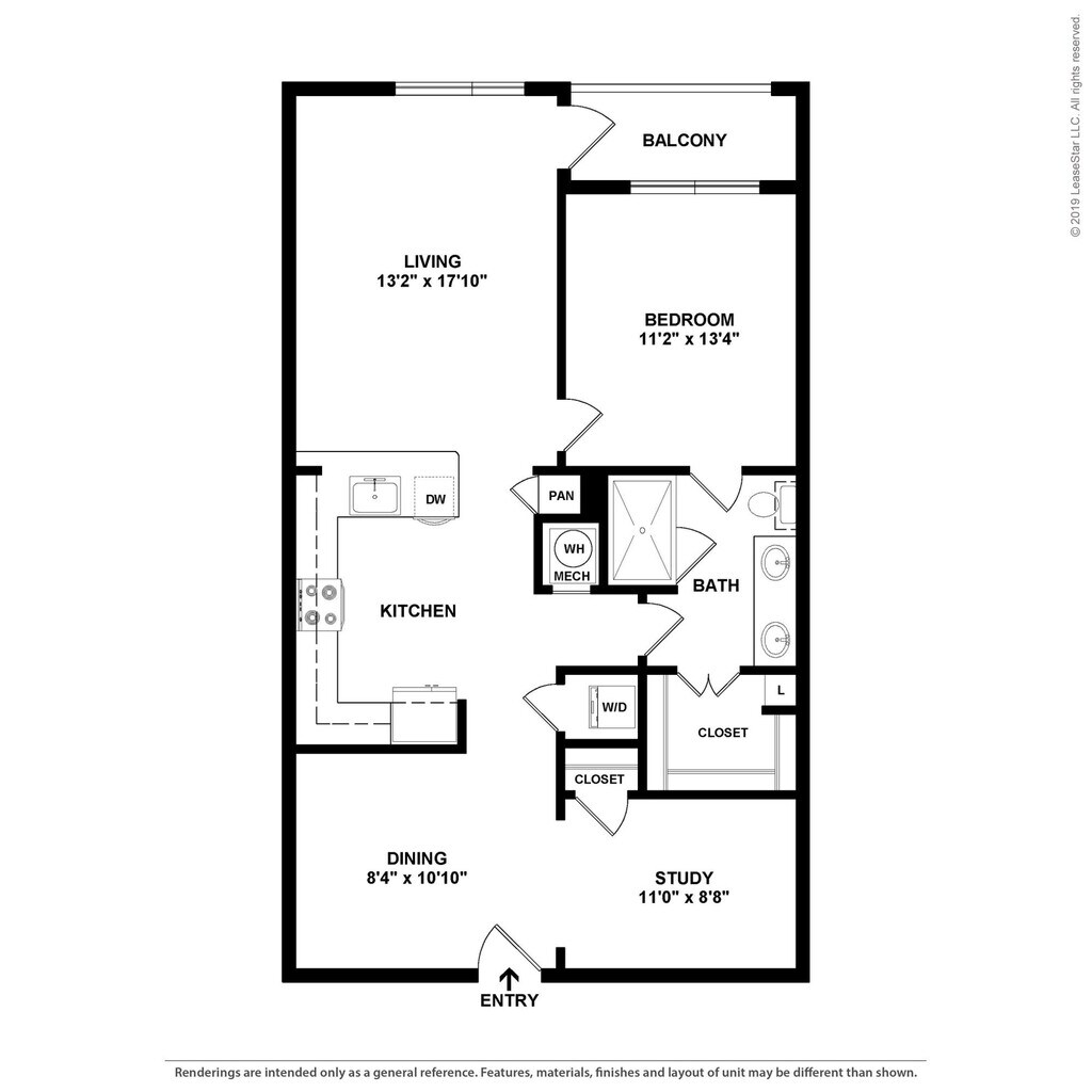 Modelo de apartamento: A1Desde $1,2111 Dormitorio, 1 Baño, 632 sq ftDisponible Ahora![]()