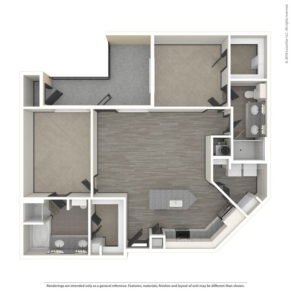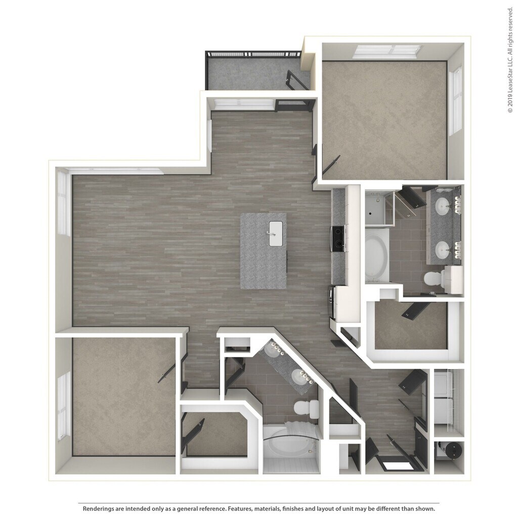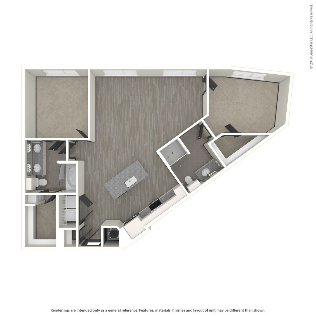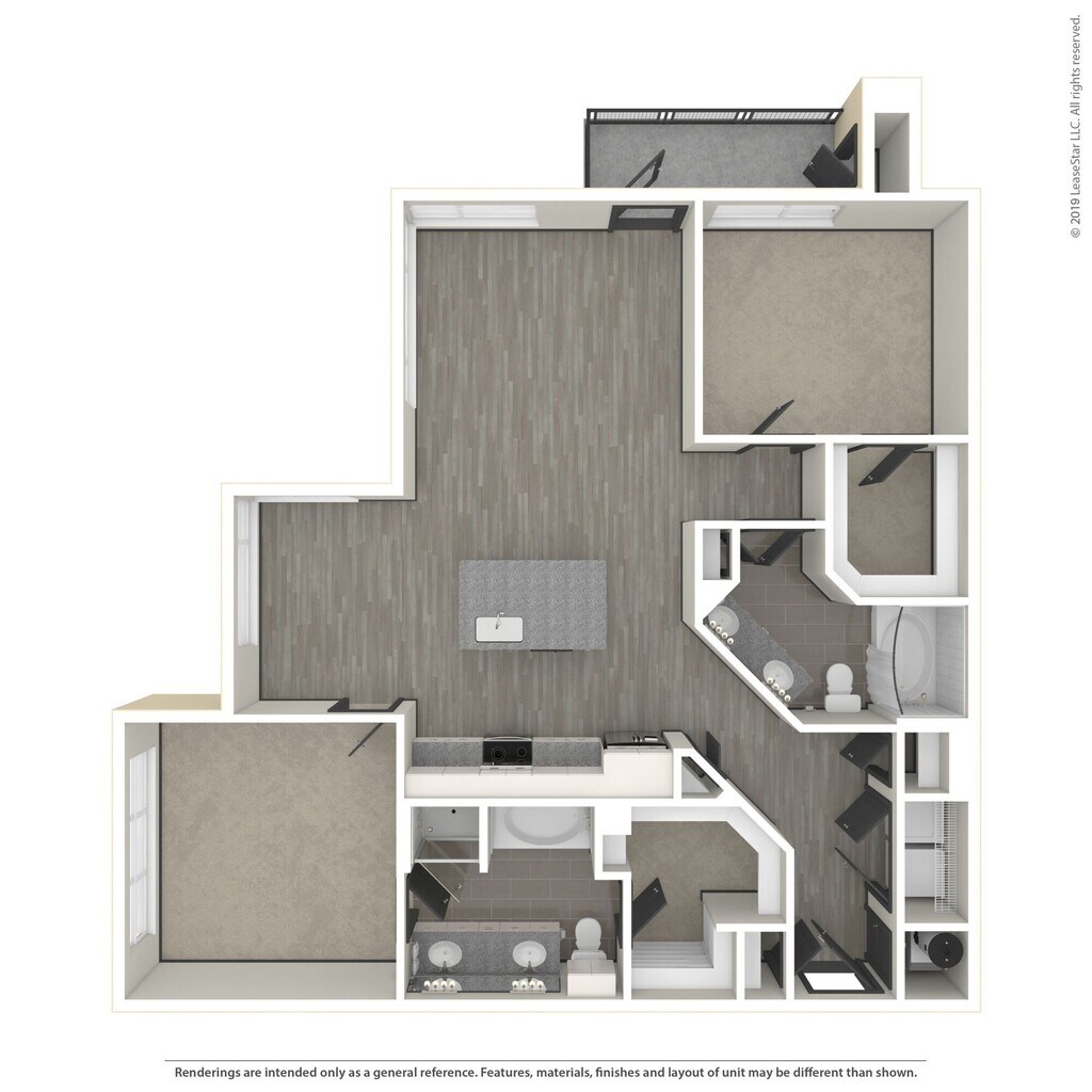 Modelo de apartamento: A3Desde $1,2681 Dormitorio, 1 Baño, 724 sq ftDisponible Ahora![]()