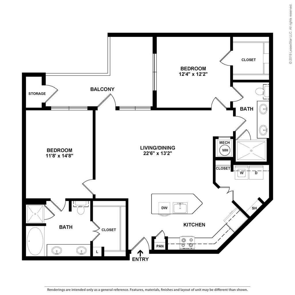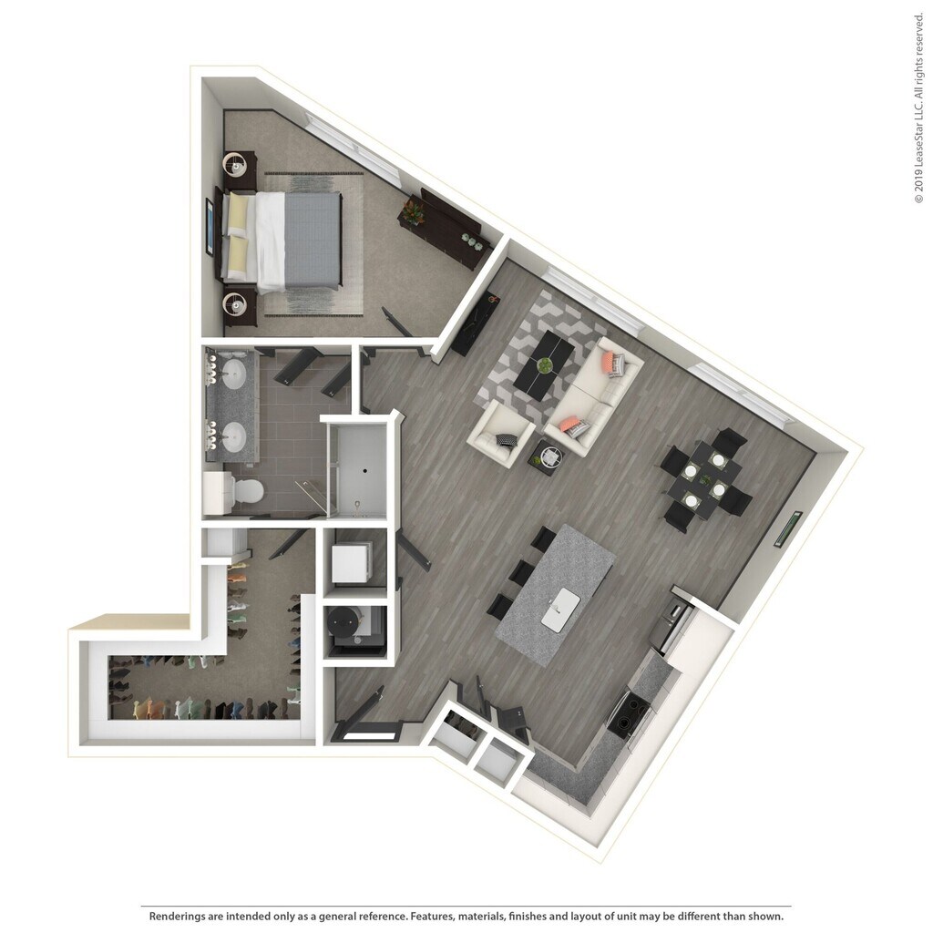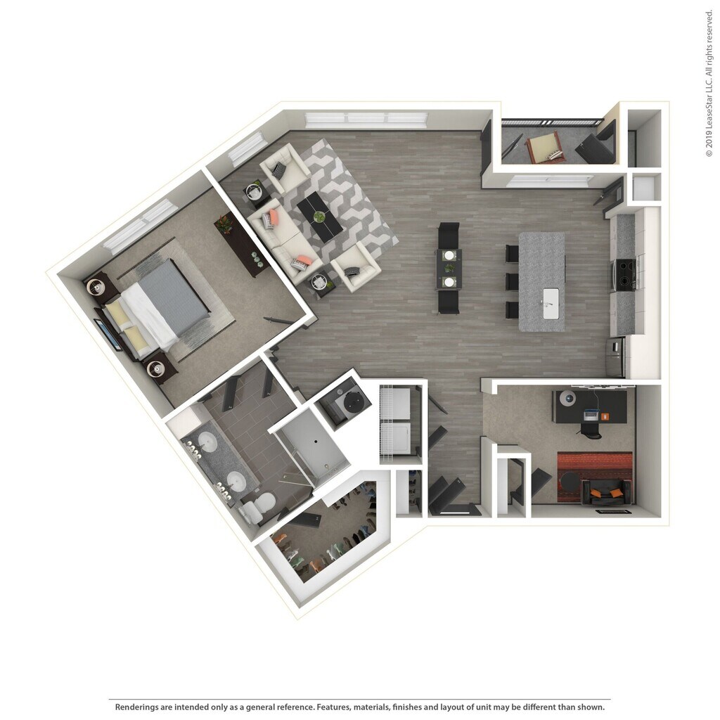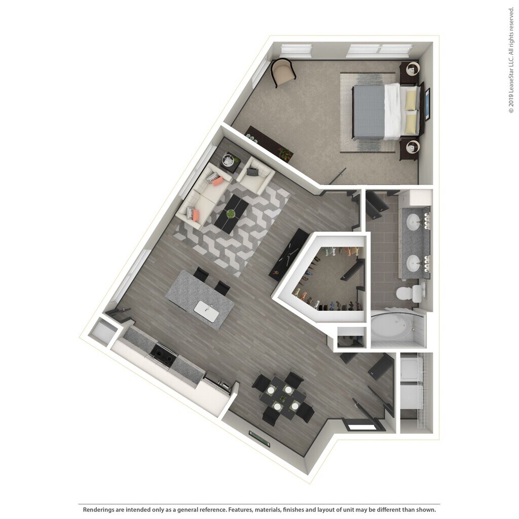 1 Dormitorio, 1 Baño, 724 pies²Disponible AhoraGalería del Modelo