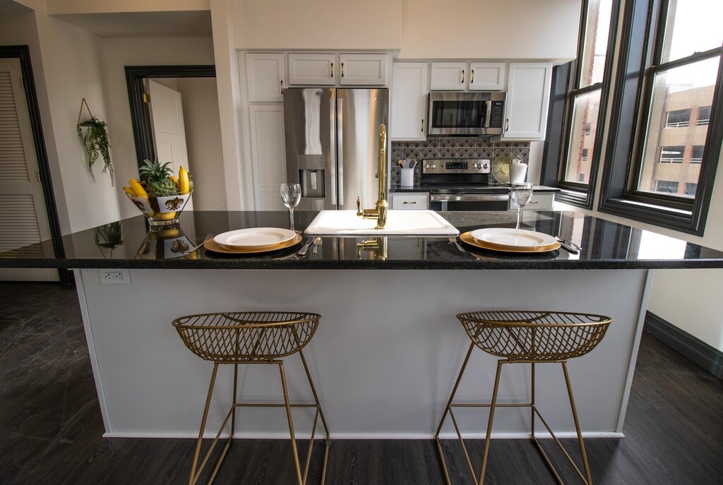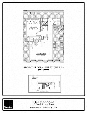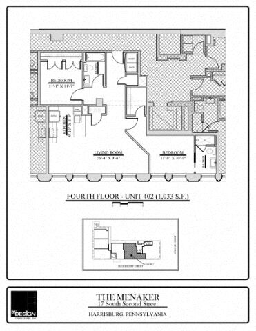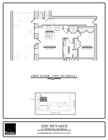 The Menaker ofrece 28 apartamentos diseñados con un toque del período de estilo art decó; un período que se caracteriza por un diseño audaz y fuerte con el uso de diseños geométricos y una generosa dosis de oro, acero inoxidable y rica incrustaciones de madera sin excederse. Construido en 1906, y a solo completamente rediseñada y renovado en unidades residenciales, la estructura es un ancla de prueba para el lado sur de Market Square. A solo una cuadra de la ribera del río Susquehanna y al lado del campus de la universidad UPMC Pinnacle Hospital; pocas cuadras de Restaurant Row, Strawberry Square y junto al nuevo edificio de Ciencias de la Salud de la Universidad, la vida de apartamento no podría ser más conveniente.