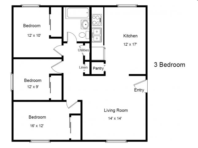 Modelo de apartamento: Three Bedroom3 Dormitorios, 1 Baño, 865-882 sq ftNo Disponible![]()