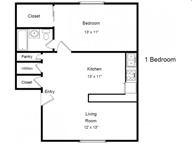 1 Dormitorio, 1 Baño, 487-525 pies²Galería del Modelo