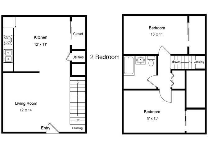 Modelo de apartamento: Two Bedroom2 Dormitorios, 1 Baño, 667 sq ftNo Disponible![]()