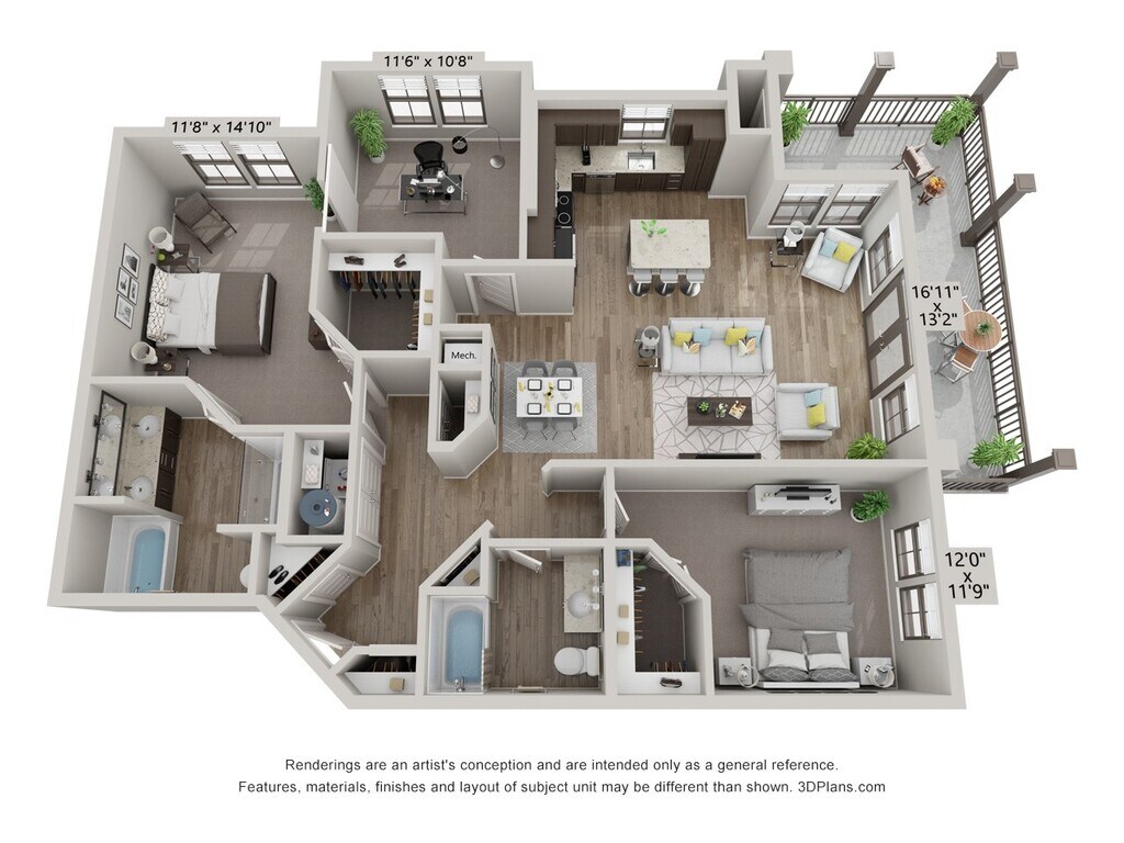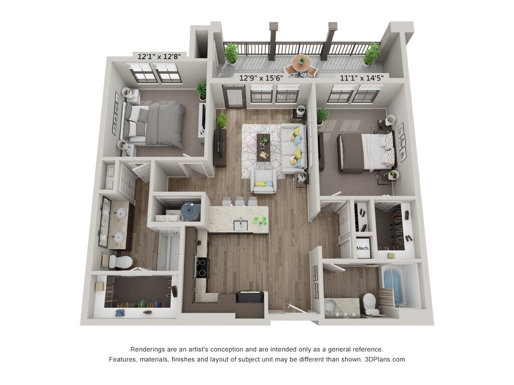 Modelo de apartamento: A3 - Cobalt$1,6161 Dormitorio, 1 Baño, 744 sq ftDisponible Ahora![]()