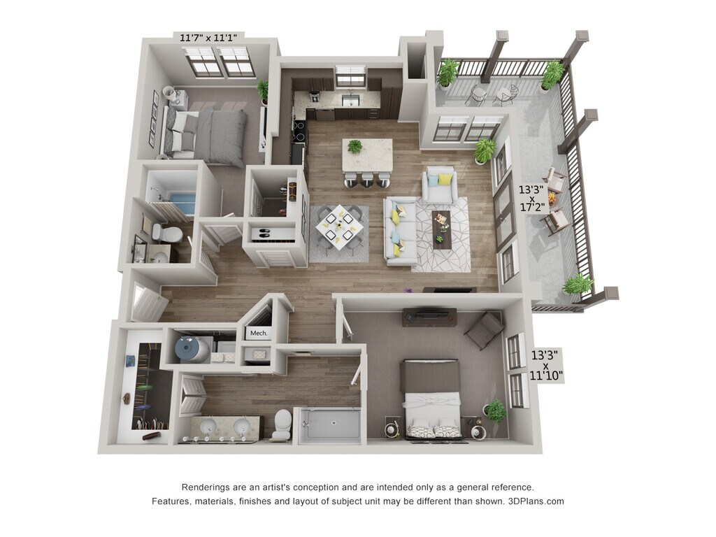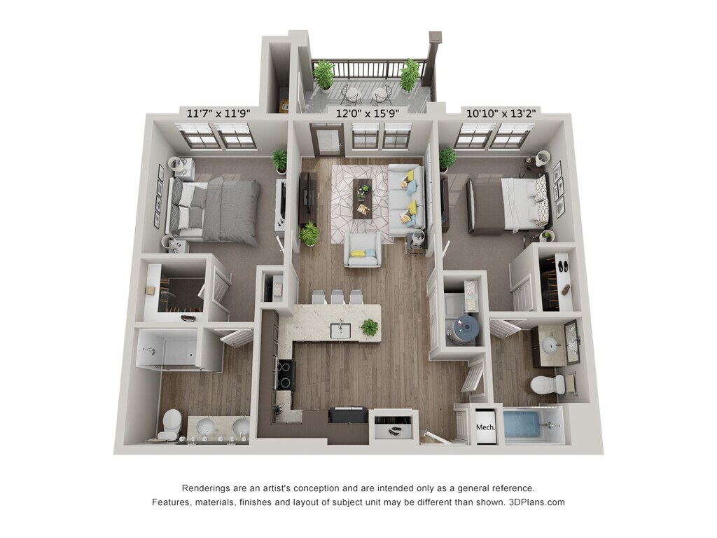 1 Dormitorio, 1 Baño, 744 pies²Disponible AhoraGalería del Modelo