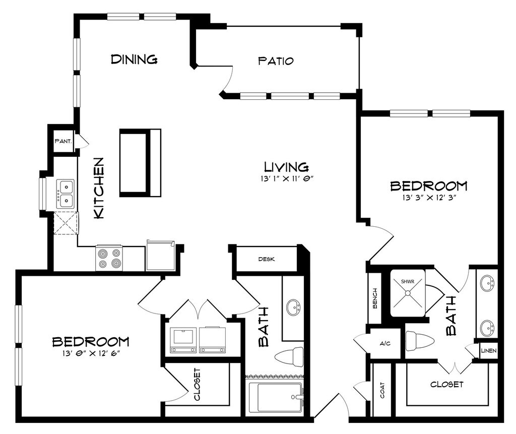 1 Dormitorio, 1 Baño, 738 pies²Disponible AhoraGalería del Modelo
