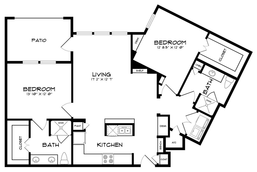 Modelo de apartamento: A2Desde $1,2951 Dormitorio, 1 Baño, 650 sq ftDisponible AhoraLos planos de la planta son una interpretación artística. Todas las dimensiones son aproximadas. Los tamaños o el detalle del producto real y sus especificaciones pueden variar. No todas las características están disponibles en todos los hogares para rentar. Los precios y la disponibilidad están sujetos a cambios. El alquiler que se muestra es mensual. Se pueden aplicar ciertos cargos, por ejemplo, entrega de paquetes, recolección de basura, agua, servicios, etc. Depositos varian. Consulta a un representante para conocer detalles.