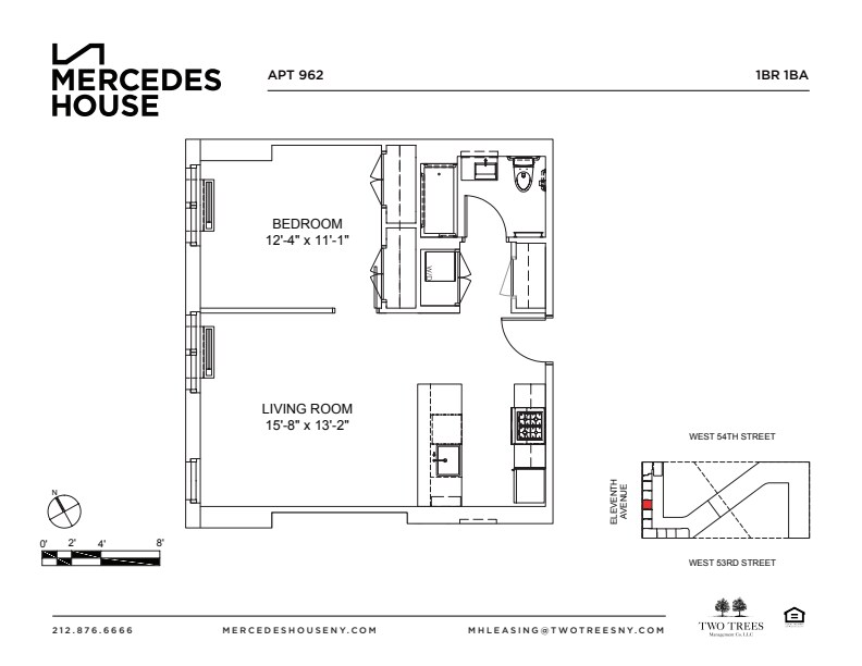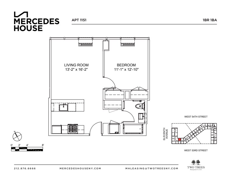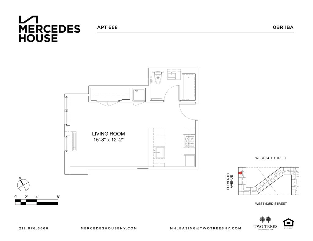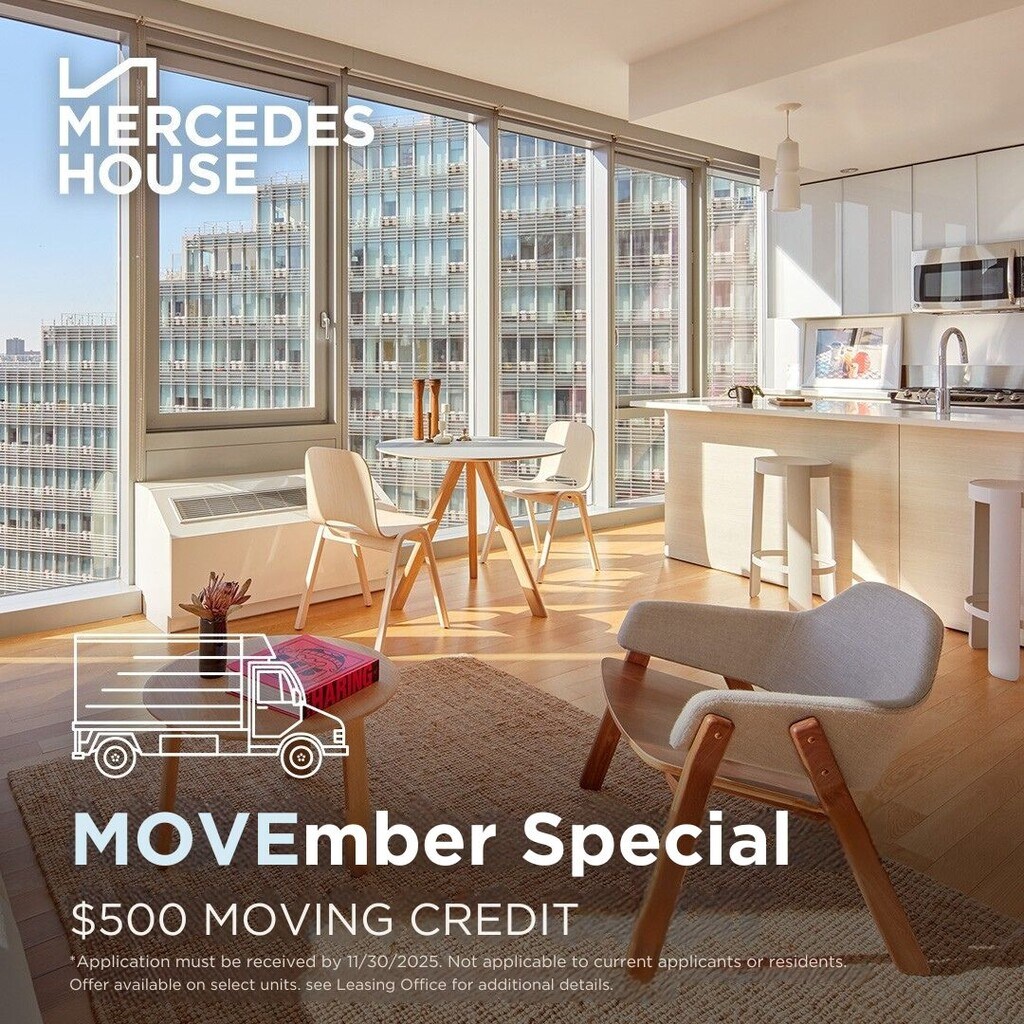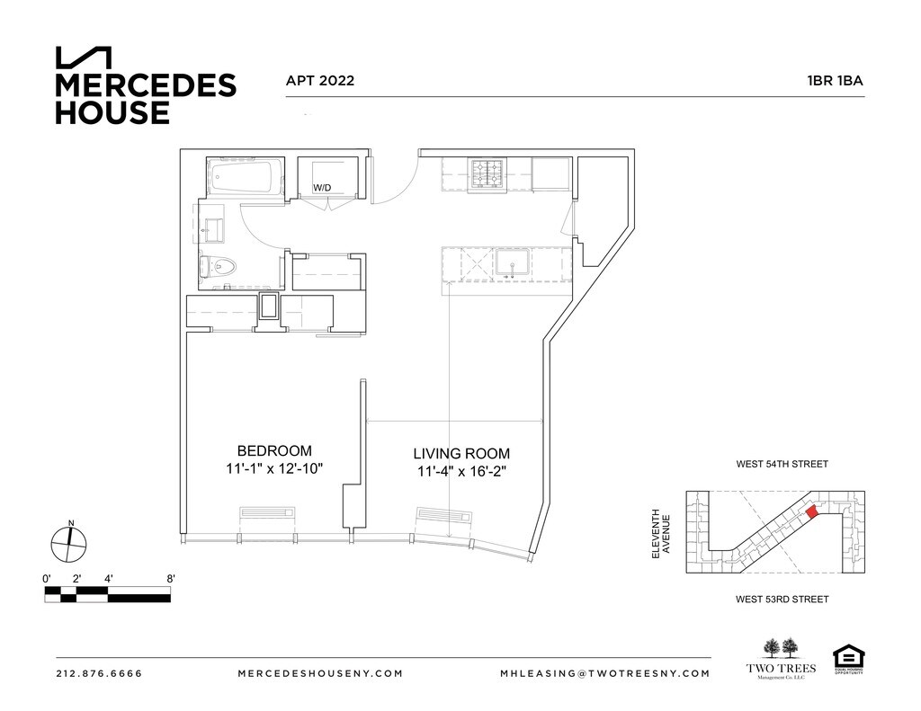 Edificio Mercedes House, el nuevo desarrollo residencial más importante de Nueva York, cambiará el paisaje urbano para siempre. De la unión de Two Trees Management Company y el visionario arquitecto Enrique Norten ha surgido un lujoso complejo de alquiler con 29 pisos que se elevan por encima de la ciudad y ofrecen vistas despejadas del río Hudson. Una moderna torre de vidrio y vegetación. Aquí se vive la buena vida. Diseño audaz. Comodidad en el centro de la ciudad. Mercedes House es el domicilio para la vida con estilo. Comodidades Los residentes de Mercedes House no solo alquilan un hogar. Con la extraordinaria disposición de comodidades disponibles, adoptan un estilo de vida: Centro de bienestar de vanguardia y club deportivo con piscinas al aire libre y techada, dos terrazas al aire libre con espacio verde para broncearse, canchas de bochas, yoga, spinning, básquetbol en cancha de interior, salón de boxeo, putting green de exterior, sala de cine al aire libre e instalaciones con spa. Estacionamiento techado disponible en las instalaciones. En una ciudad que lo tiene todo, Mercedes House pone todo al alcance de tu mano. Vecindario Mercedes House está idealmente ubicado en el perímetro oeste del centro de la ciudad de Manhattan; se levanta sobre el río Hudson y está en frente del recientemente renovado Clinton Park. Aquí es donde la vida, el trabajo y el placer se entremezclan. Todo lo que define a Nueva York está ubicado a una corta distancia. Mercados y restaurantes internacionales, tiendas familiares, Hudson River Park, lugares de entretenimiento de primera categoría. El corazón de la ciudad late justo detrás de tu puerta.