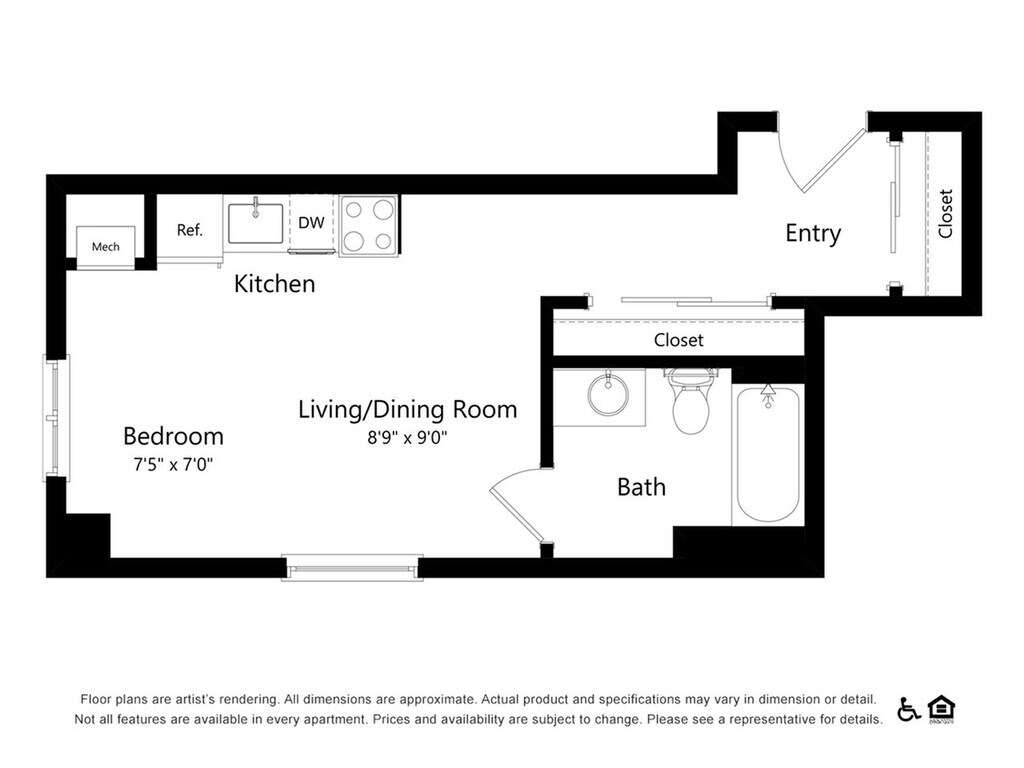 Estudio, 1 Baño, 323 pies²Disponible AhoraGalería del Modelo