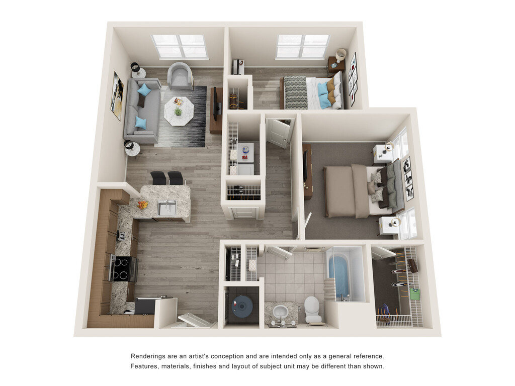 2 Dormitorios, 1 Baño, 866 pies²Disponible Dec 9Galería del Modelo