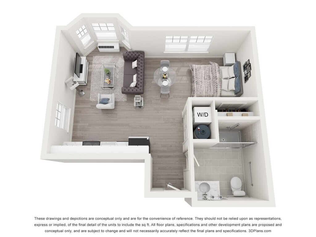 Studio D - Imagen 1 Unidad de apartamento: 323Modelo de apartamento: Studio D$1,980Estudio, 1 Baño, 531 sq ftDisponible AhoraStudio C