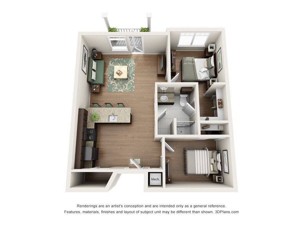 Unidad de apartamento: 202Modelo de apartamento: 2BR/1.0BA$2,1202 Dormitorios, 1 Baño, 707 sq ftDisponible Ahora![]()
