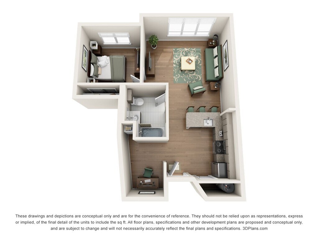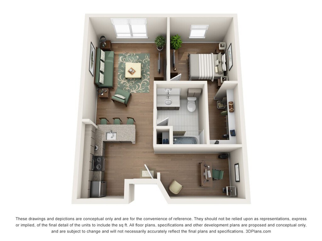 1 Dormitorio, 1 Baño, 718 pies²Disponible AhoraGalería del Modelo
