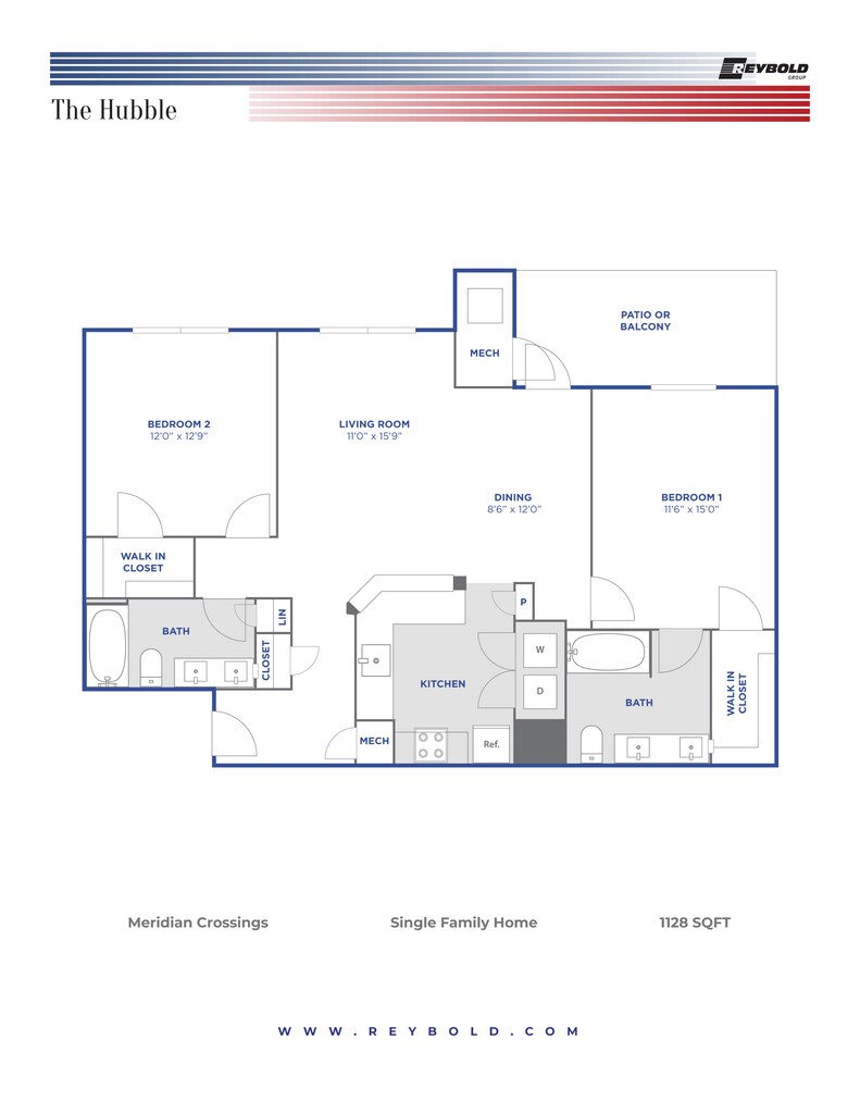 Galileo - Plano 2 Unidad de apartamento: 214MXModelo de apartamento: Galileo$2,3352 Dormitorios, 2 Baños, 1110 sq ftDisponible AhoraHubble