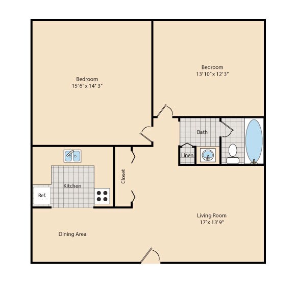Modelo de apartamento: RoseDesde $9351 Dormitorio, 1 Baño, 527 sq ftDisponible Ahora![]()