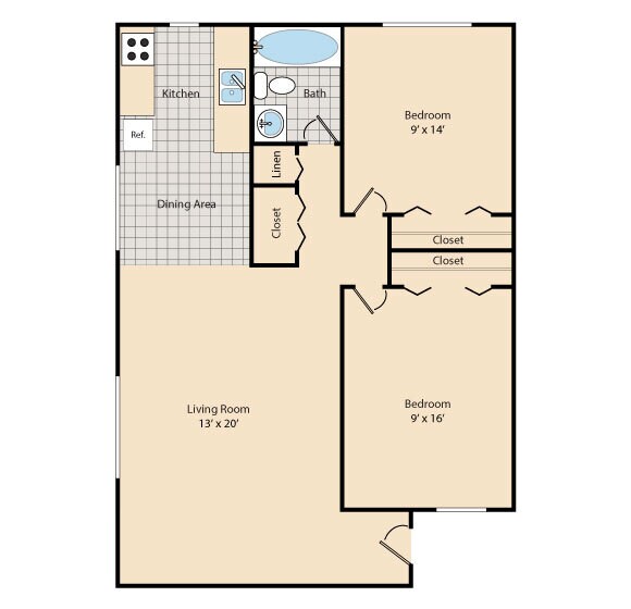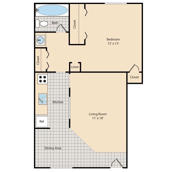 Modelo de apartamento: OrchidDesde $9001 Dormitorio, 1 Baño, 457 sq ftDisponible Ahora![]()