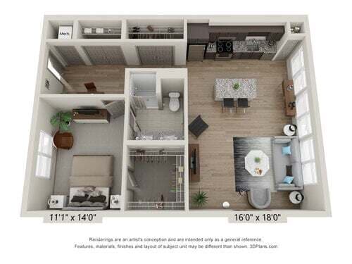 Modelo de apartamento: A1 - ReesDesde $1,4331 Dormitorio, 1 Baño, 700 sq ftDisponible Ahora![]()