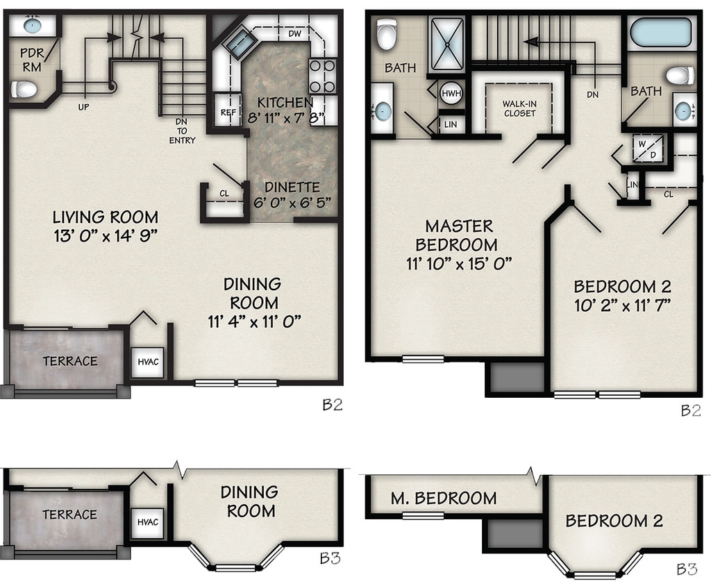 2 Beds, 2.5 Baths, 1145 sq ftAvailable NowModel Gallery