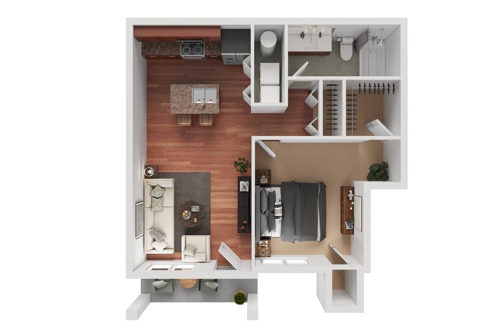 1 Dormitorio, 1 Baño, 713 pies²Galería del Modelo