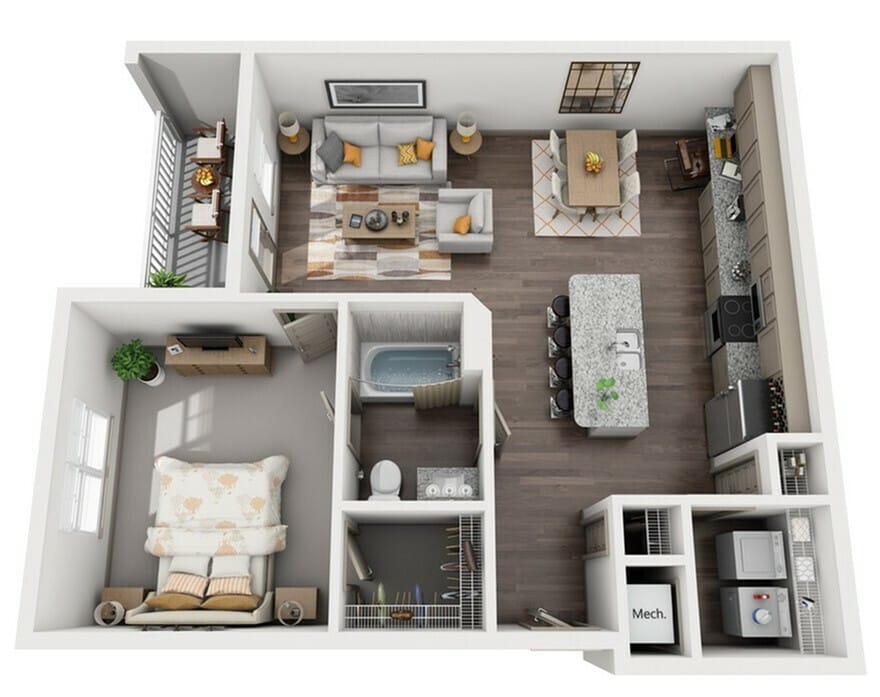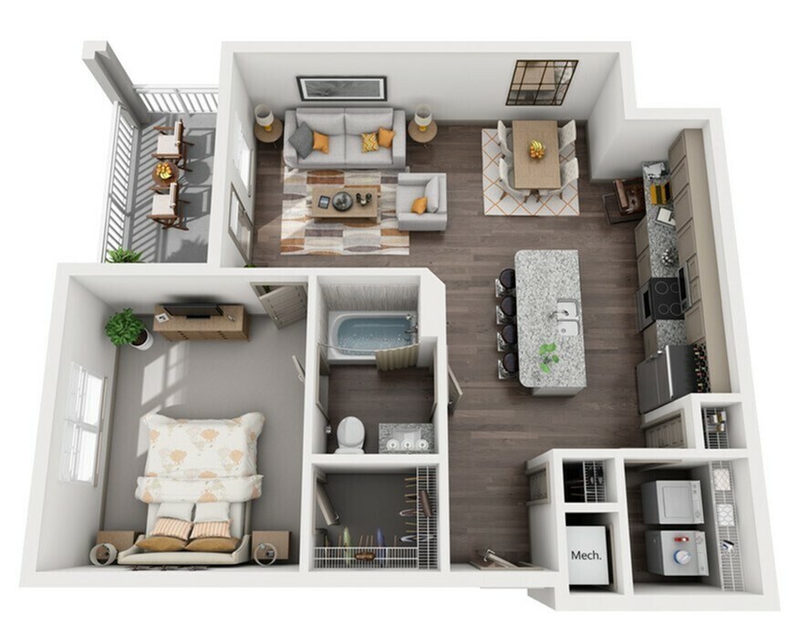 1 Dormitorio, 1 Baño, 808 pies²El más grandeEsta opción tiene las unidades más grandes para este modeloGalería del Modelo