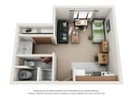 1 Dormitorio, 1 Baño, 600 pies²Disponible August 20, 2026Galería del Modelo