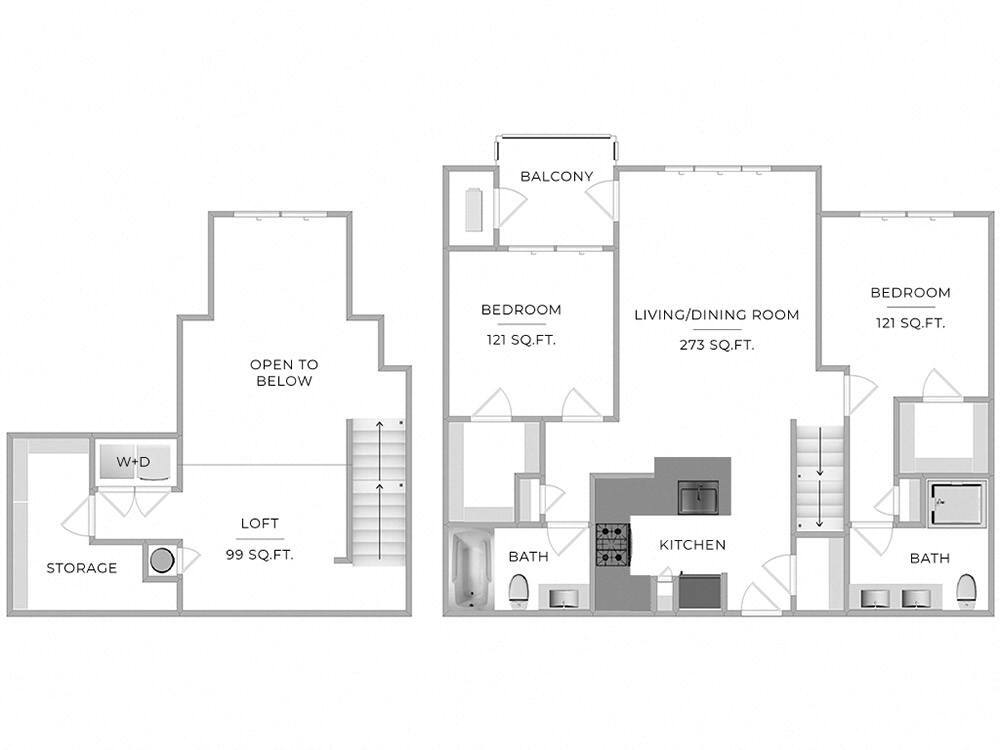 Two Bedroom Two Bathroom with Loft - Plano 1 Unidad de apartamento: 2304Modelo de apartamento: Two Bedroom Two Bathroom with Loft$2,8852 Dormitorios, 2 Baños, 1349 sq ftDisponible Ahora![]()