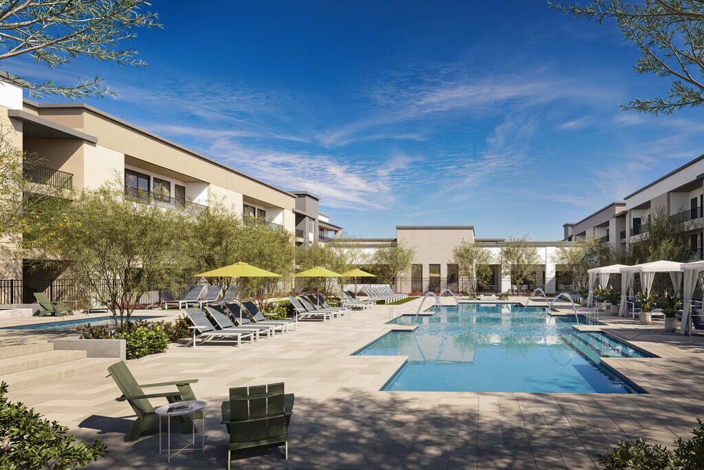 Meritum Sonoran Desert Apartments in Phoenix, AZ offers brand new one, two, and three-bedroom apartments in the North Gateway area, designed to combine modern style with comfort. Each home features quartz countertops, kitchen islands, walk-in closets, in-home laundry, and private patios or balconies with stunning Sonoran Desert views. The pet-friendly community offers resort-style swimming pools, a relaxing hot tub, fully equipped fitness center, self-serve market, poolside cabanas, clubhouse, package lockers, EV charging stations, and regular resident events. With onsite management and convenient access to shopping, dining, and major roadways, residents enjoy a modern, elevated lifestyle in Phoenix, AZ.