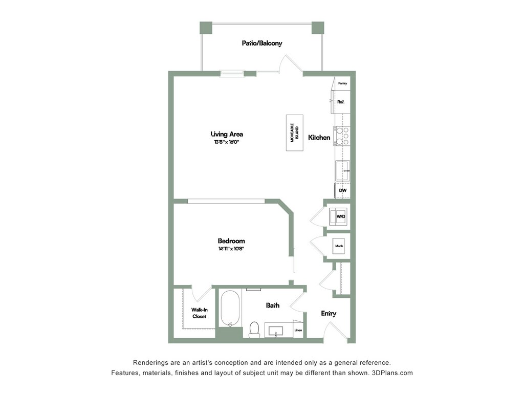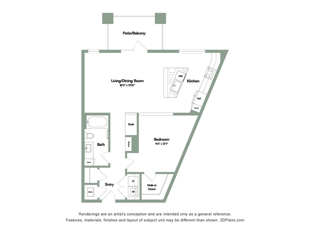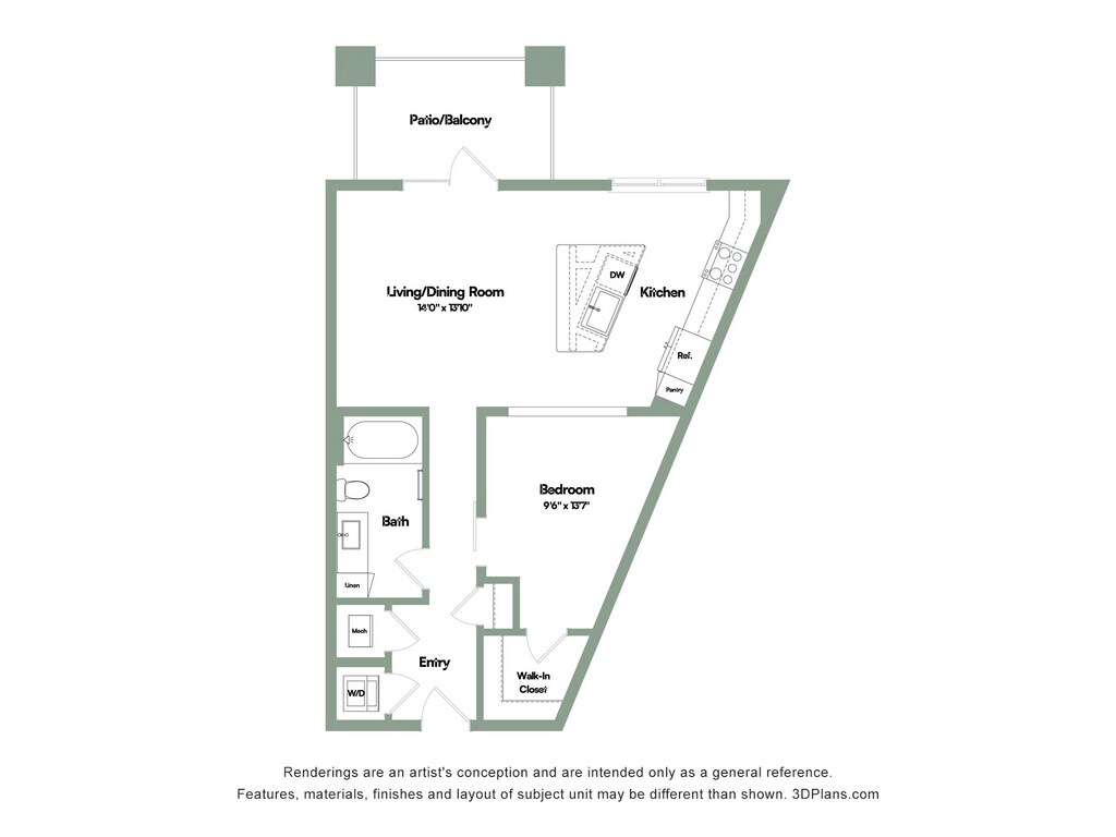 Estudio, 1 Baño, 823 pies²Disponible AhoraGalería del Modelo