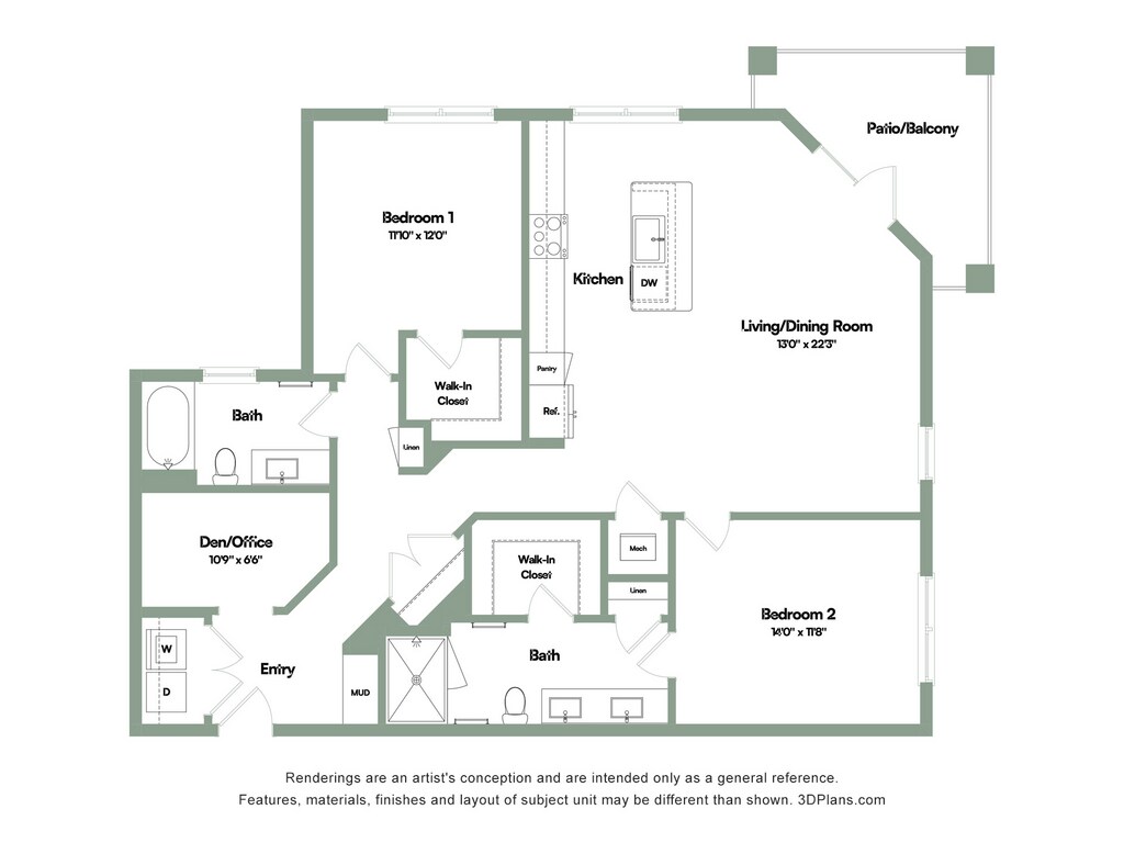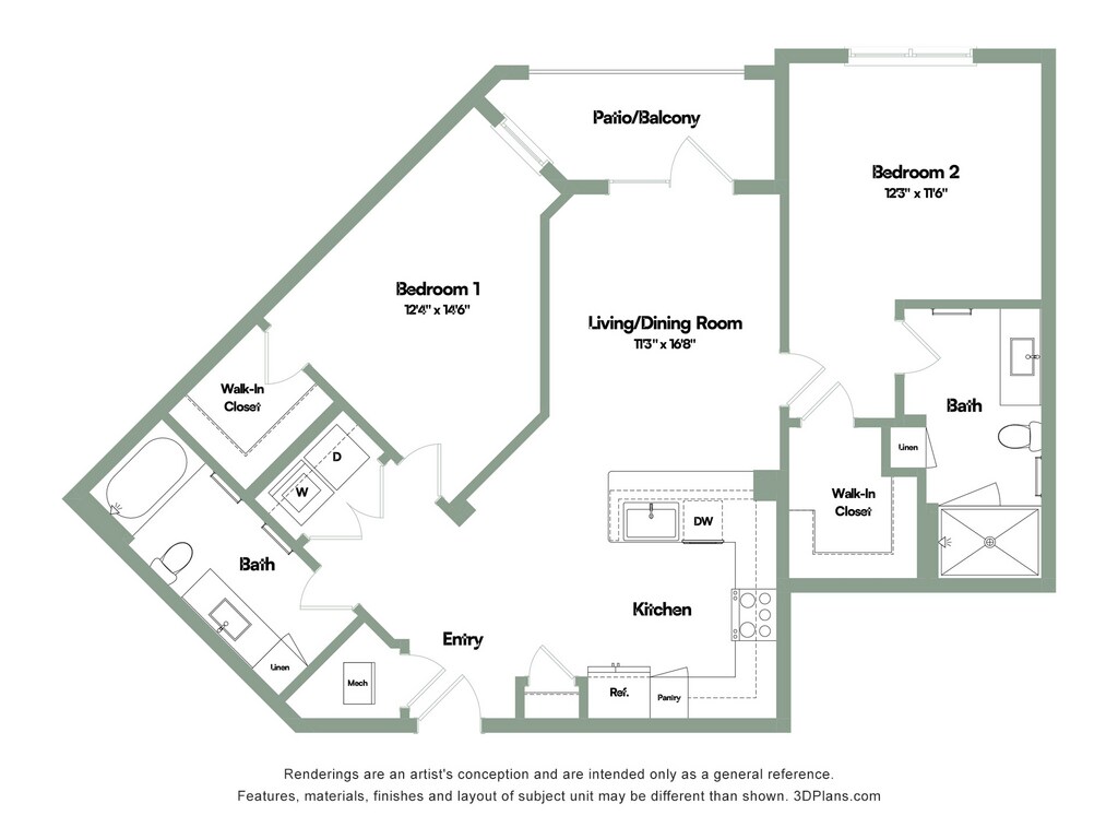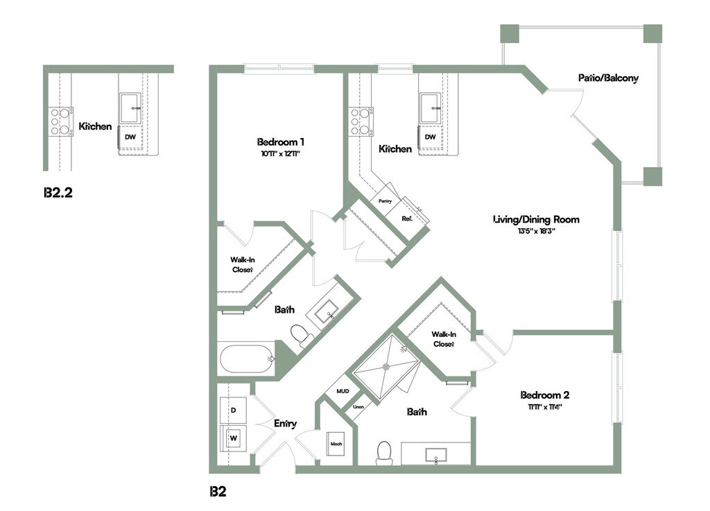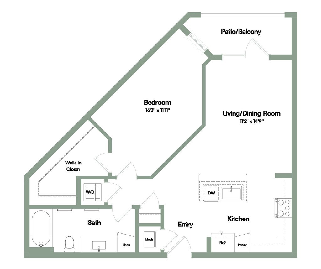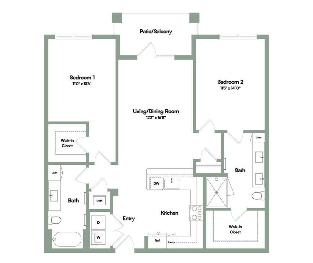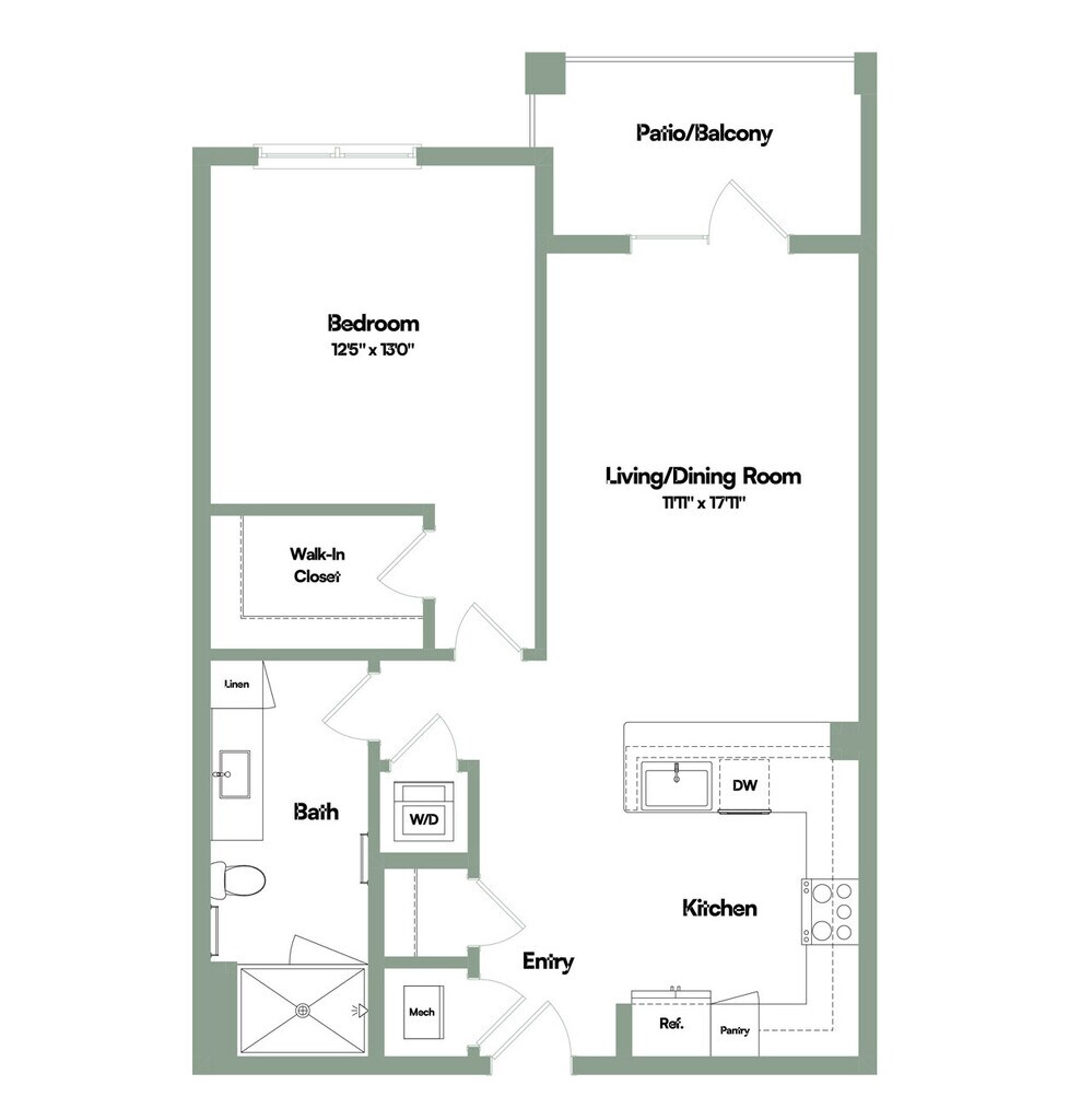 1 Dormitorio, 1 Baño, 937 pies²Disponible AhoraGalería del Modelo
