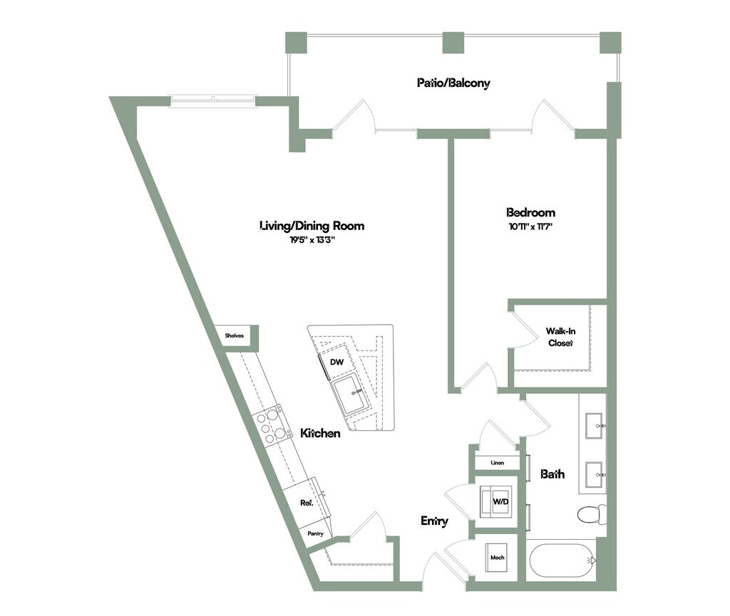 Modelo de apartamento: The Milestone | StudioDesde $1,646Estudio, 1 Baño, 939 sq ftDisponible Ahora![]()