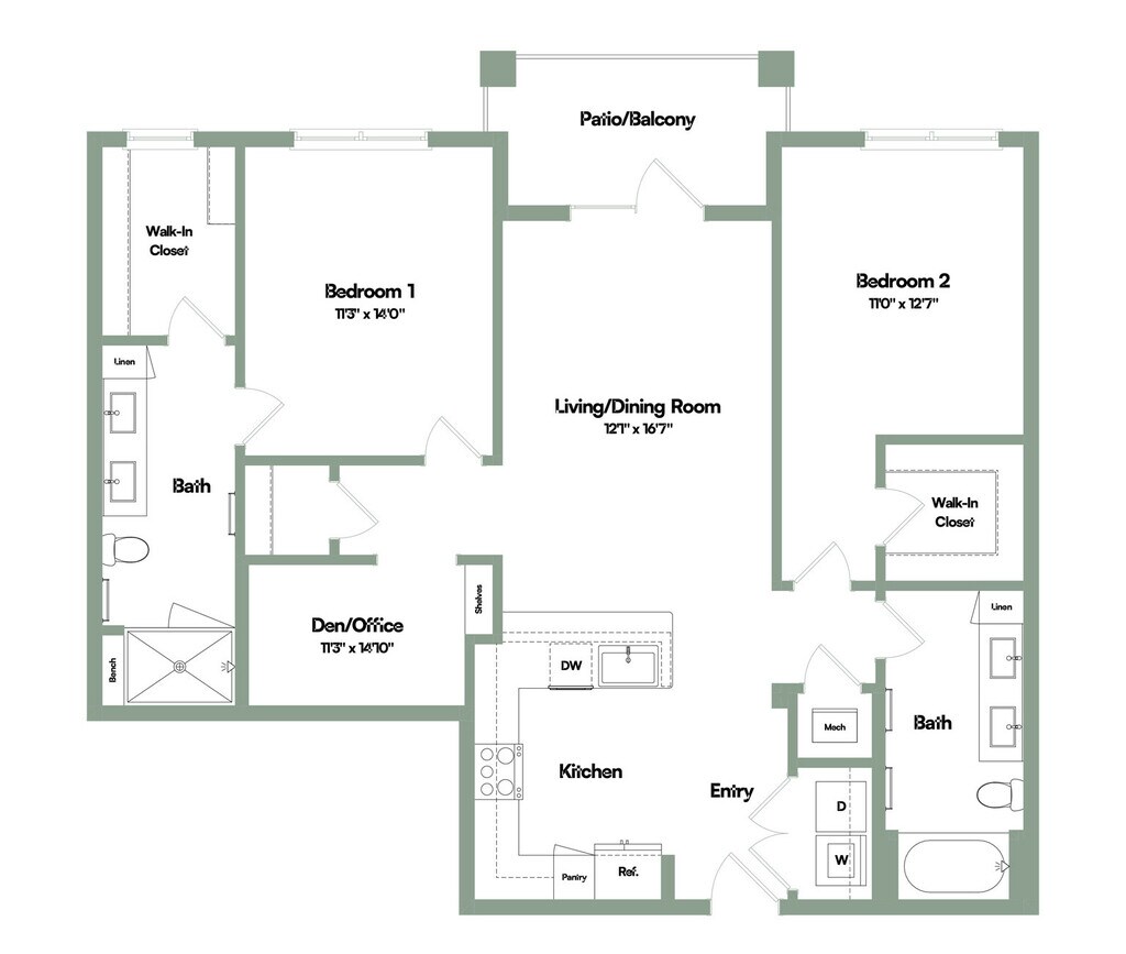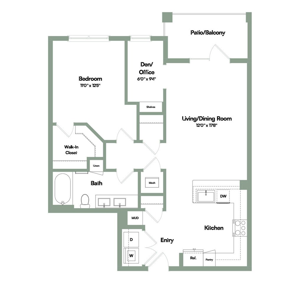 Estudio, 1 Baño, 823 pies²Disponible AhoraGalería del Modelo