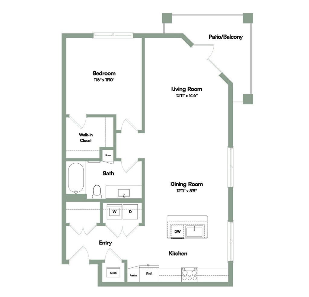 Unidad: 1230 - Plano 1 Unidad de apartamento: 2202Modelo de apartamento: The Milestone | Studio$1,551Estudio, 1 Baño, 939 sq ftDisponible Ahora![]()
