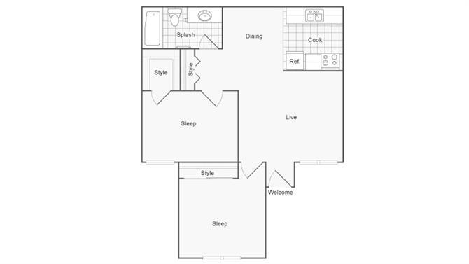 2 Dormitorios, 1 Baño, 771 pies²Disponible AhoraGalería del Modelo