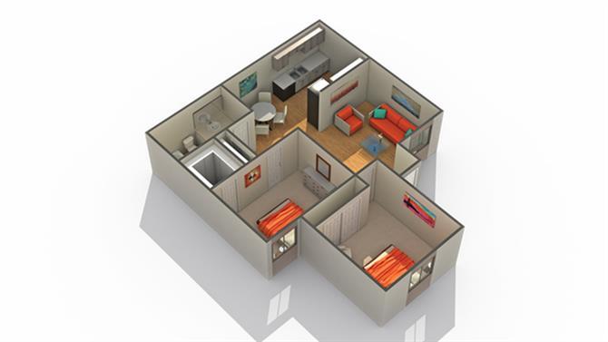 2 Dormitorios, 1 Baño, 686 pies²Disponible AhoraGalería del Modelo