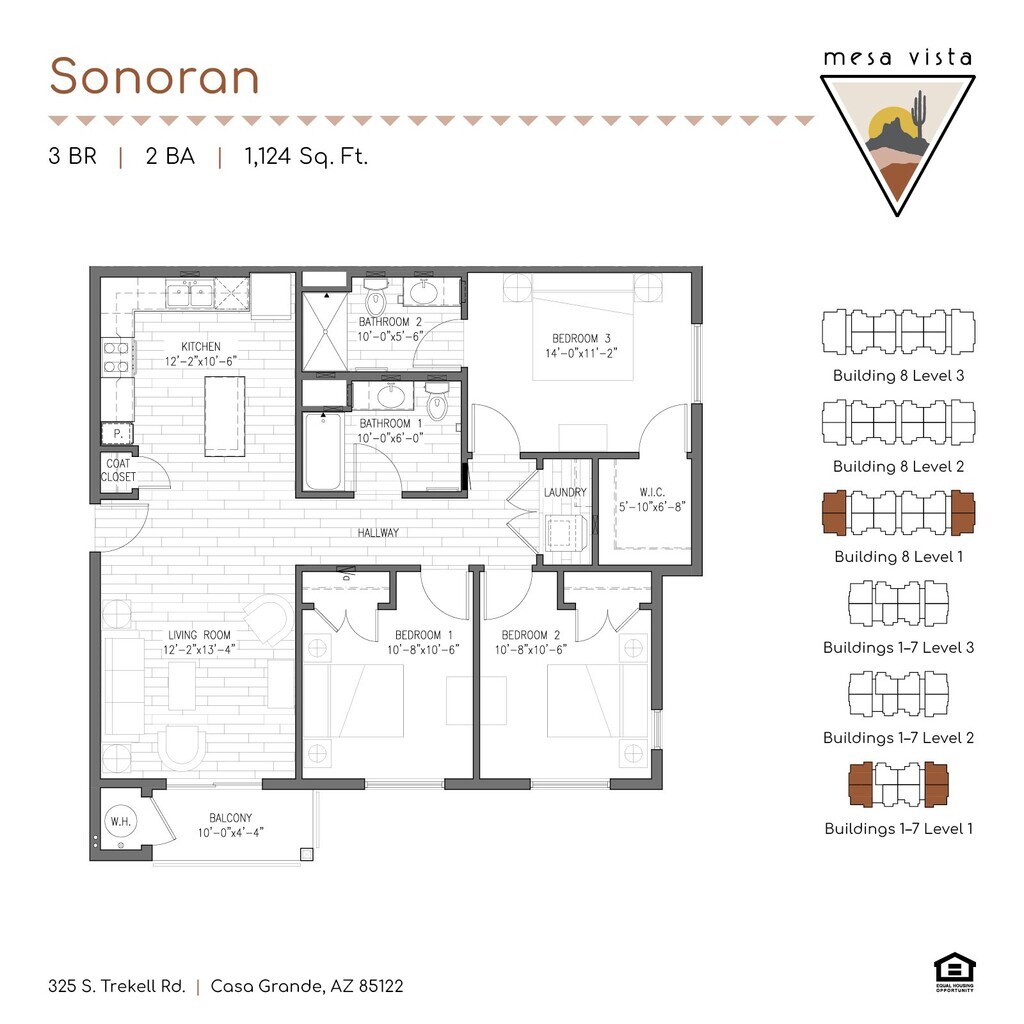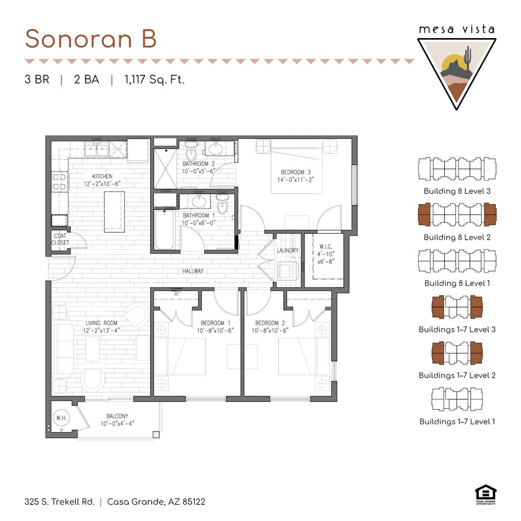 Modelo de apartamento: SonoranDesde $1,4253 Dormitorios, 2 Baños, 1117-1124 sq ftDisponible Ahora![]()