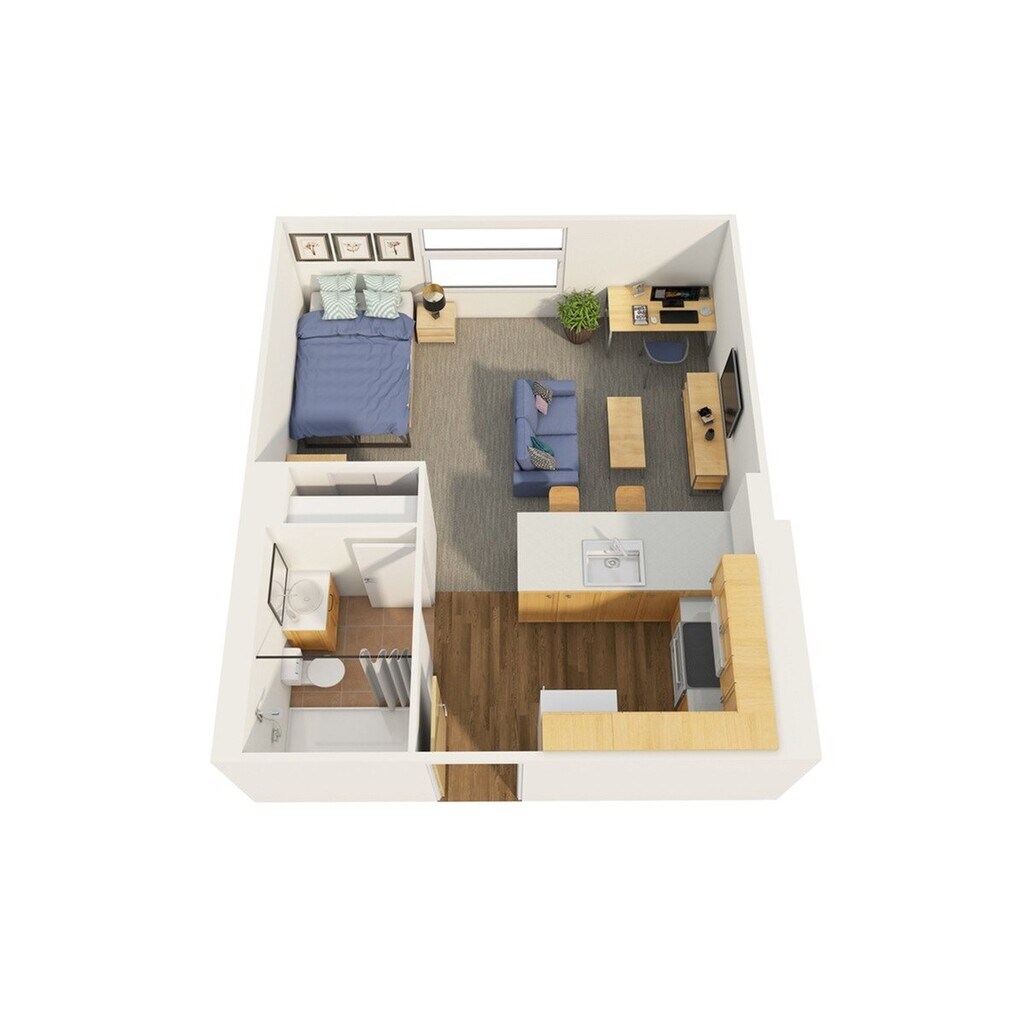 Modelo de apartamento: Studio 11 Dormitorio, 1 Baño, 333 sq ftDisponible AhoraLos planos son representaciones artísticas. Todas las dimensiones son aproximadas. El producto y las especificaciones reales pueden variar en tamaño o detalle. No todas las características están disponibles en cada vivienda en alquiler. Por favor, consulta con un representante para obtener más detalles.