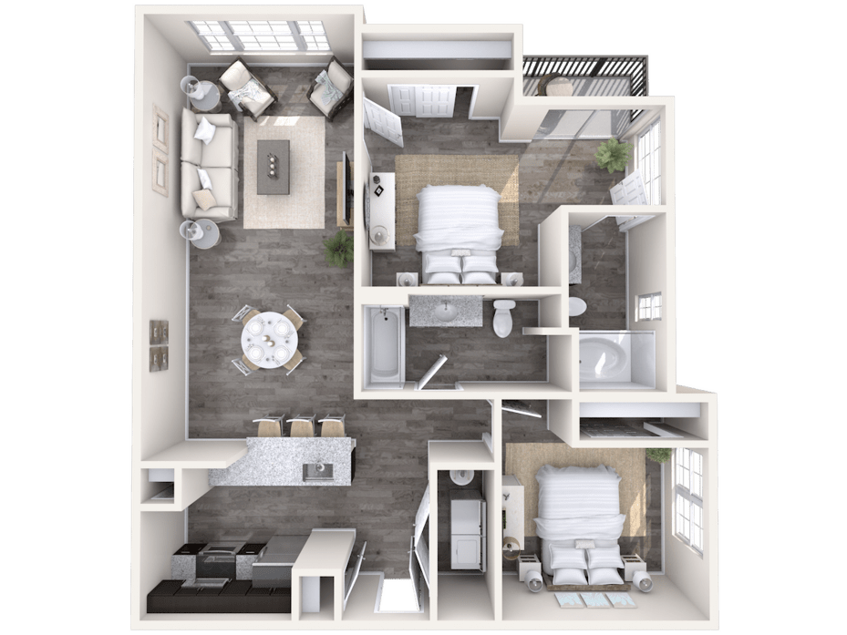 Modelo de apartamento: JubileeDesde $1,2451 Dormitorio, 1 Baño, 651 sq ftDisponible Ahora![]()
