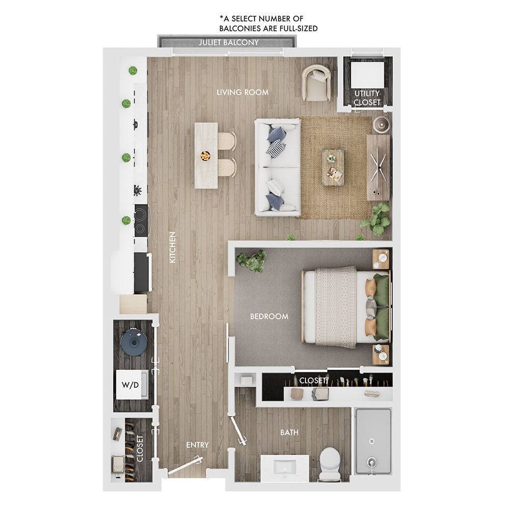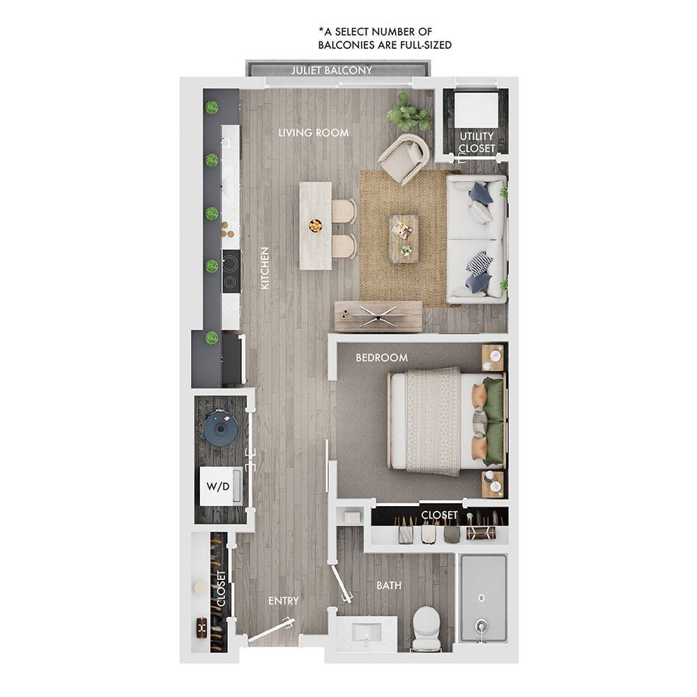 Estudio, 1 Baño, 525 pies²Disponible AhoraGalería del Modelo