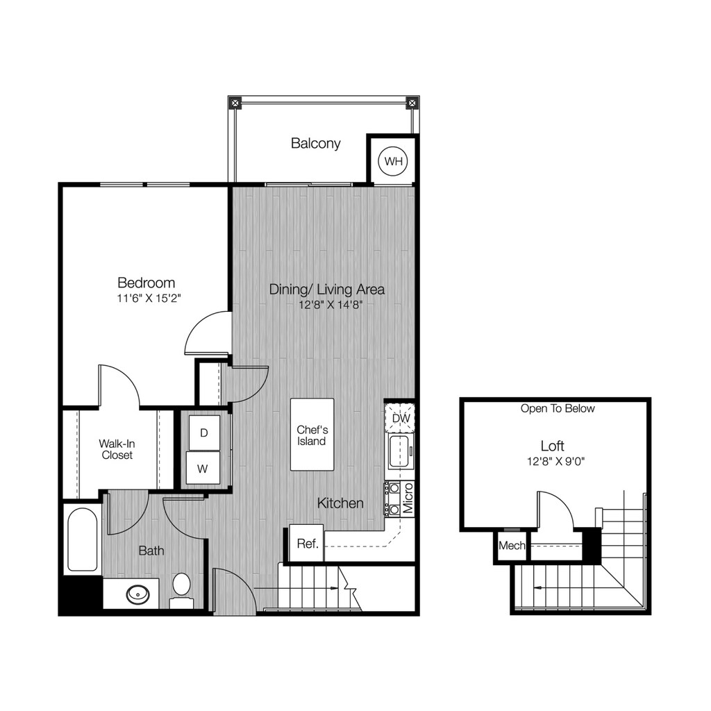 1 Dormitorio, 1 Baño, 859 pies²Disponible Jun 25Galería del Modelo