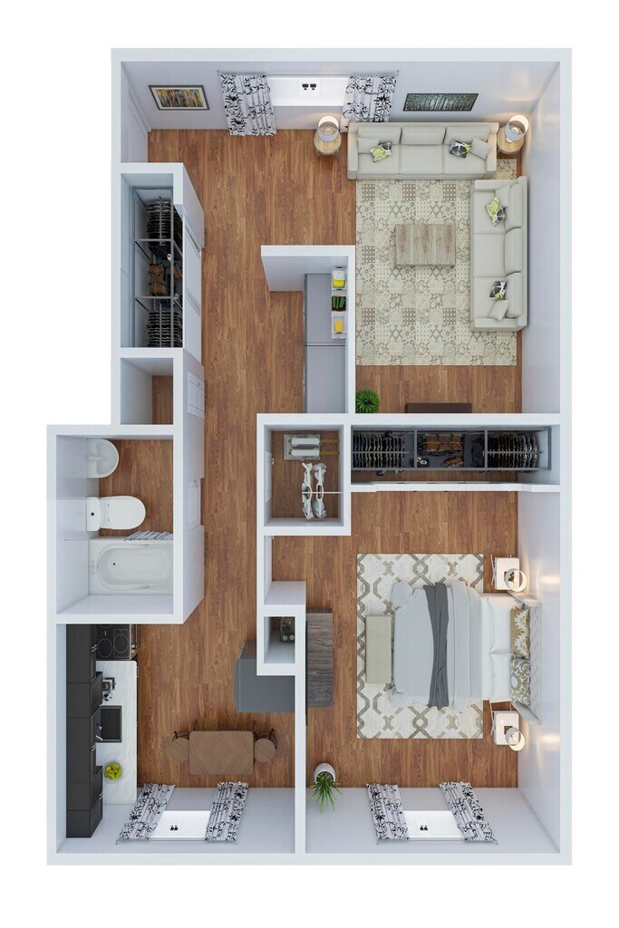 1 Dormitorio, 1 Baño, 700 pies²Disponible Nov 26Galería del Modelo