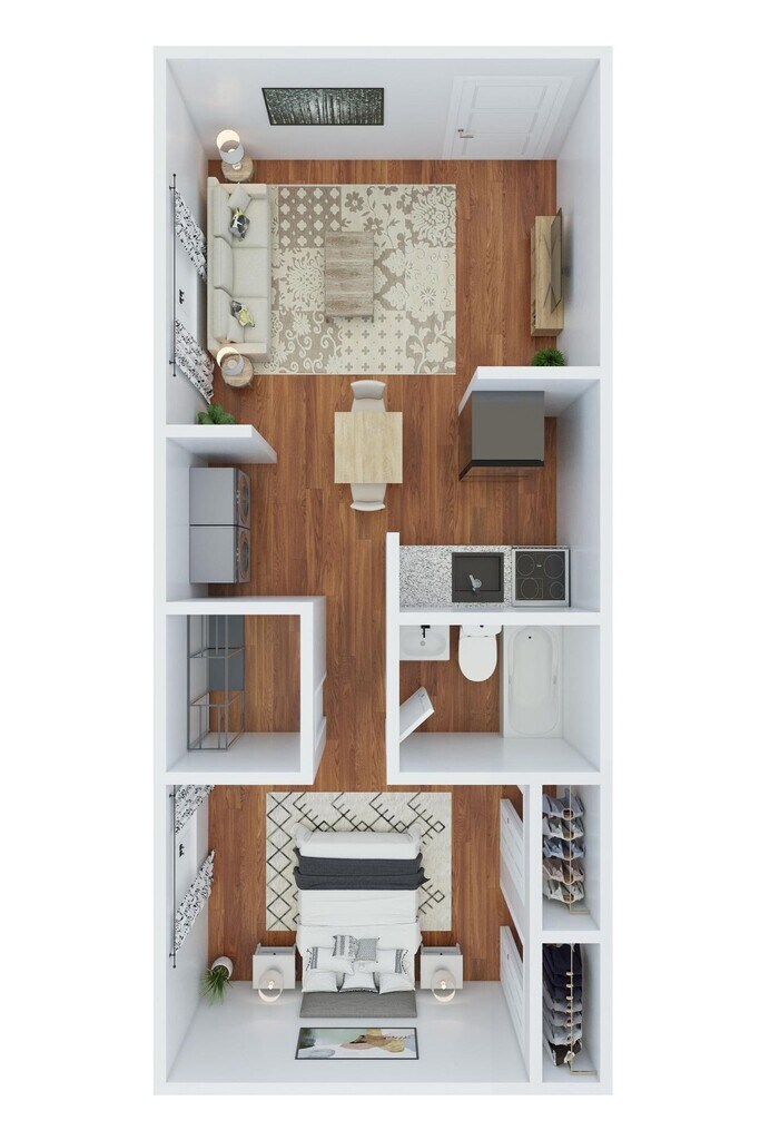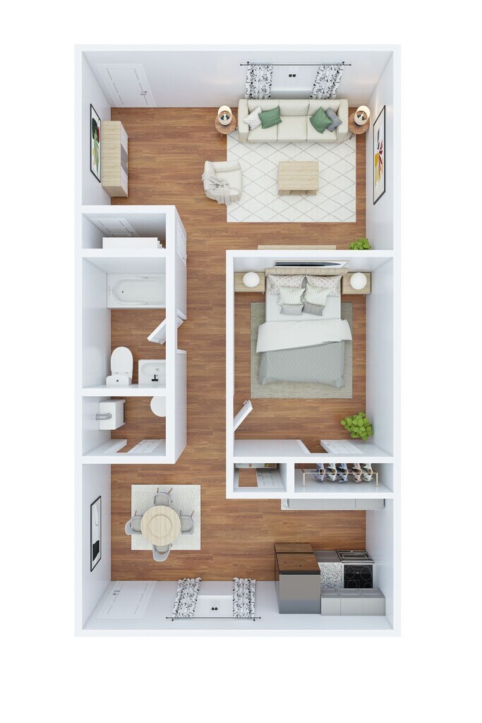 Modelo de apartamento: 1 BR/1B RSS RenoDesde $9501 Dormitorio, 1 Baño, 700 sq ftDisponible November 26, 2025PlanosFotos![]()