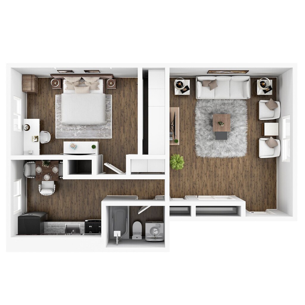 1 Dormitorio, 1 Baño, 700 pies²Disponible January 6, 2026Galería del Modelo