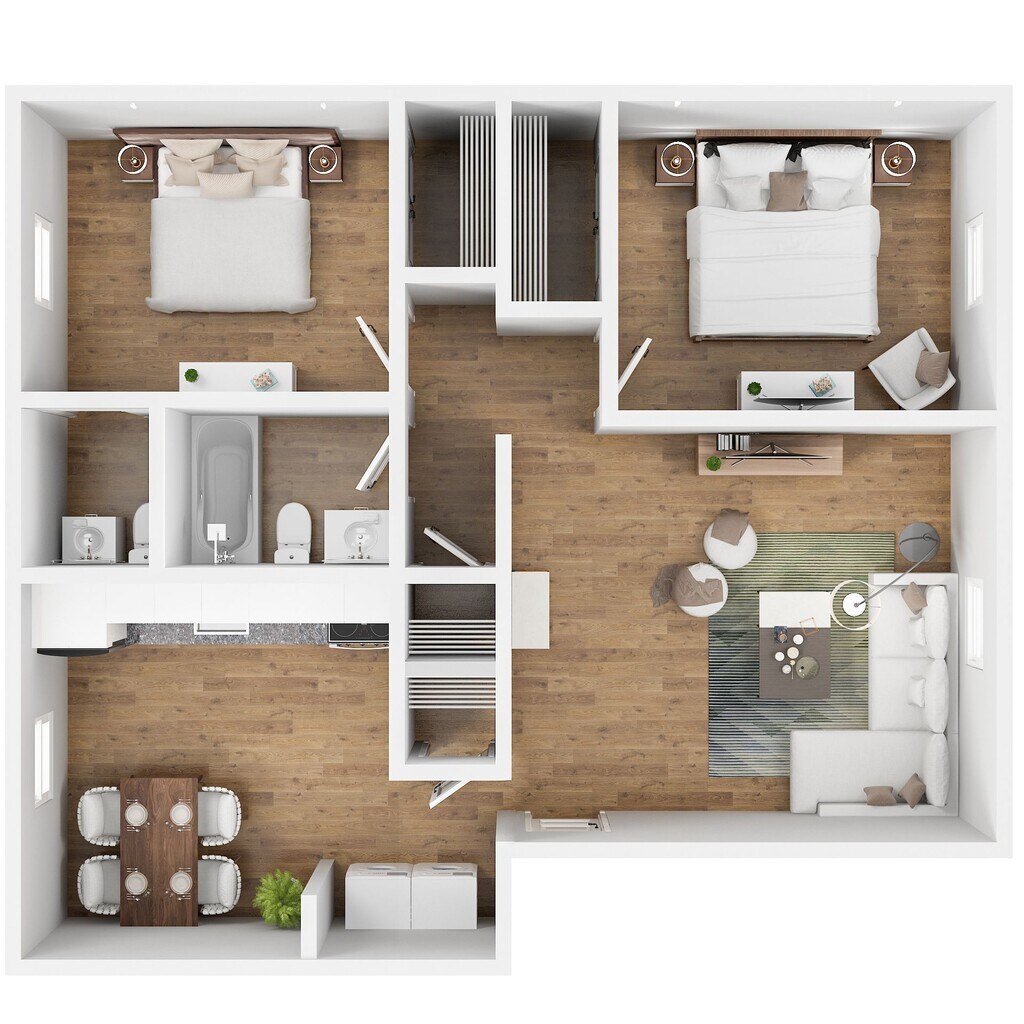 Metro Apartments at Wood River ofrece apartamentos de 1 a 2 Dormitorios desde $950 con 700–900 pies cuadrados. Aquí está el precio actual y la disponibilidad: