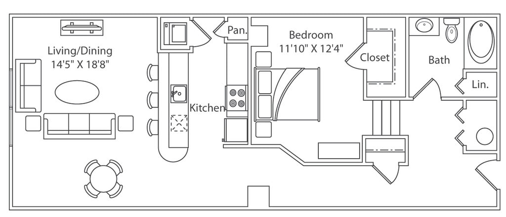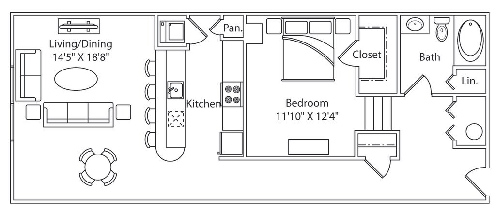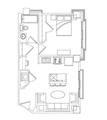 Estudio, 1 Baño, 434-470 pies²Galería del Modelo