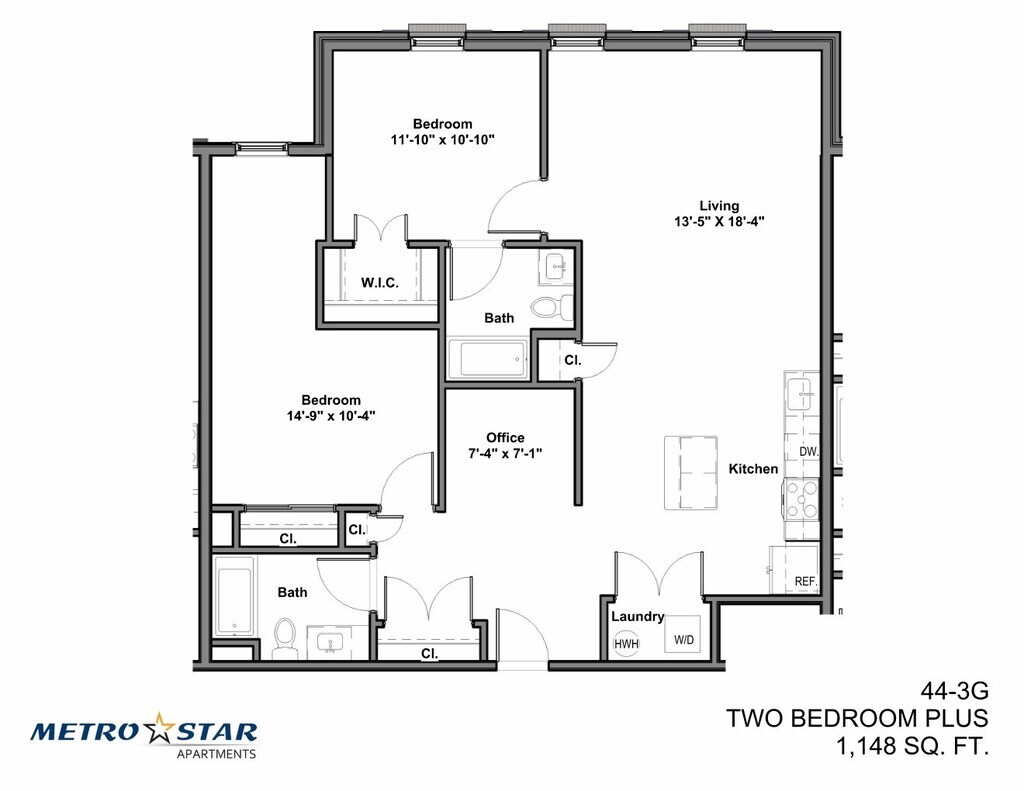 One Bed Plus - Plano 1 Unidad de apartamento: 44-2AModelo de apartamento: One Bed Plus$2,7231 Dormitorio, 1 Baño, 796 sq ftDisponible Ahora![]()
