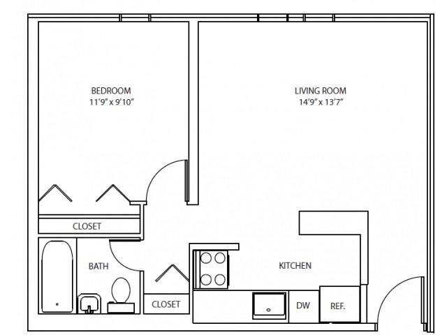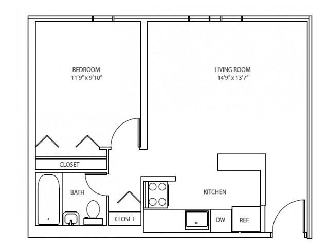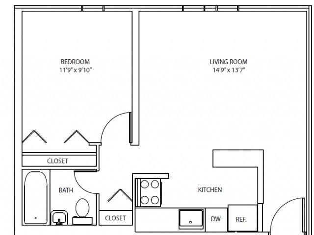 Modelo de apartamento: ROTTERDAM1 Dormitorio, 1 Baño, 548 sq ftNo Disponible![]()