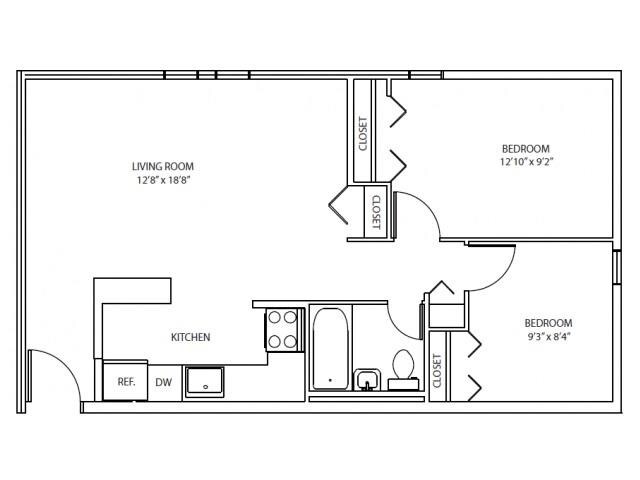 Modelo de apartamento: BIG BEN2 Dormitorios, 1 Baño, 656 sq ftNo Disponible![]()