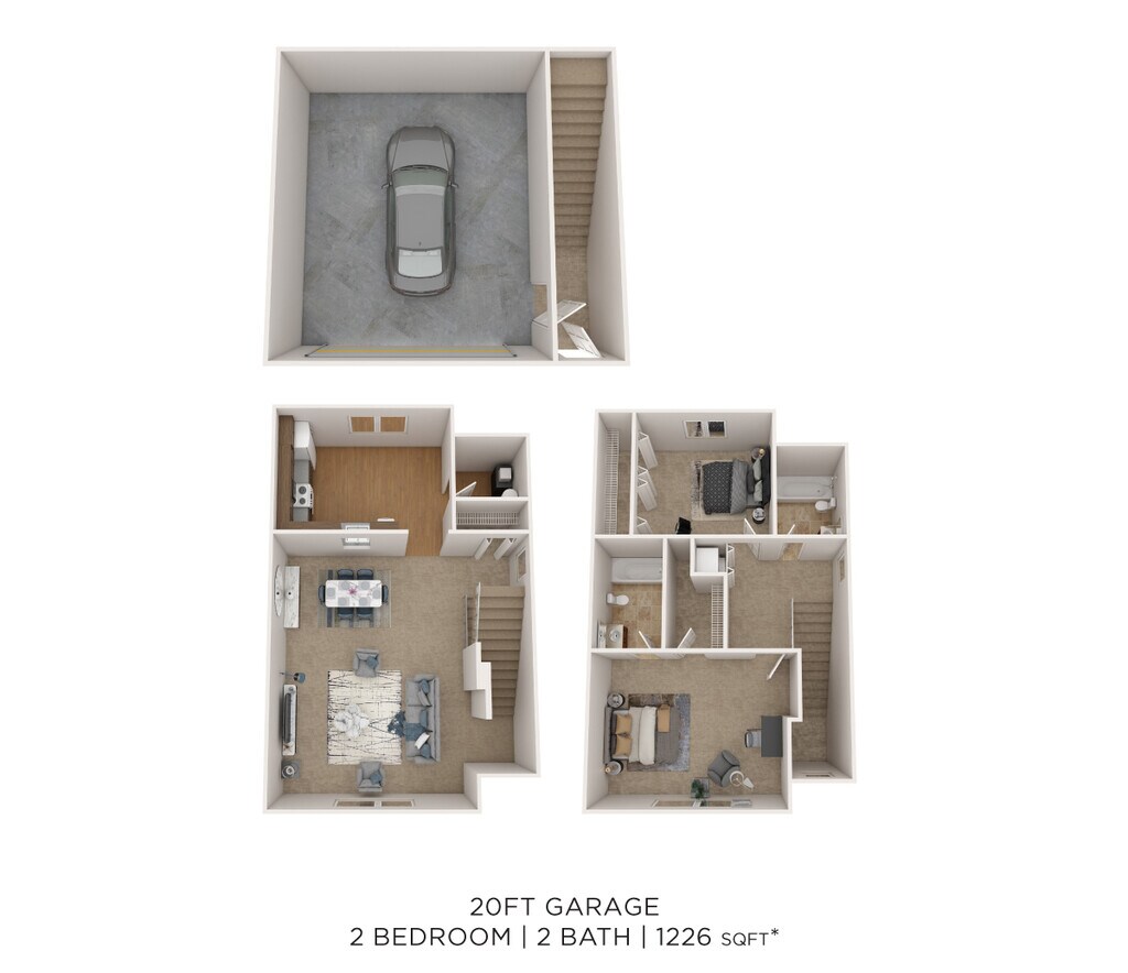 Two Bedroom 2 Bath Townhome - 1,226 sqft