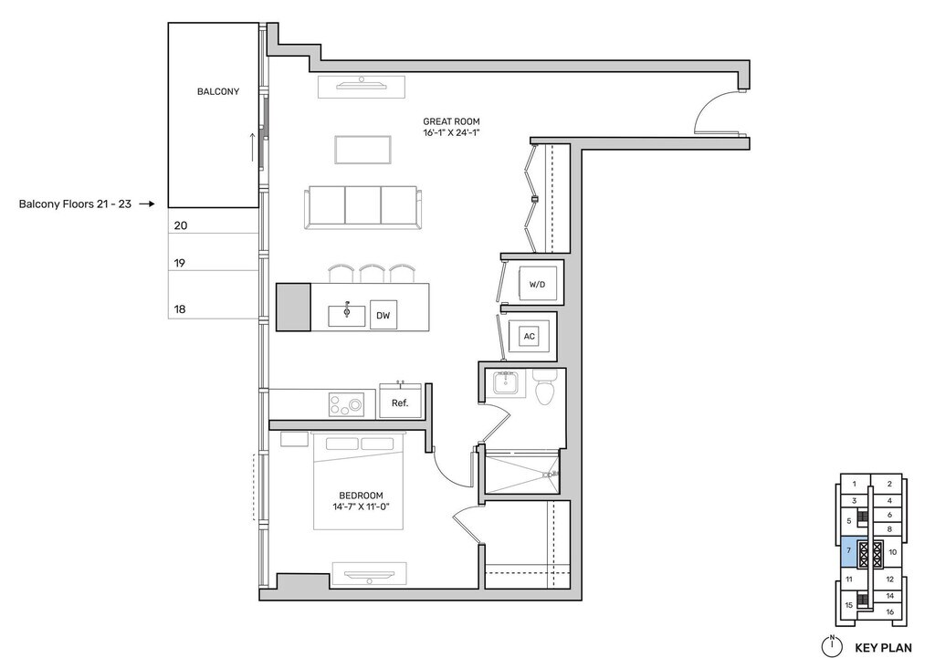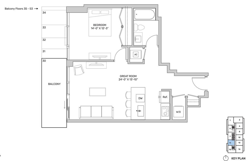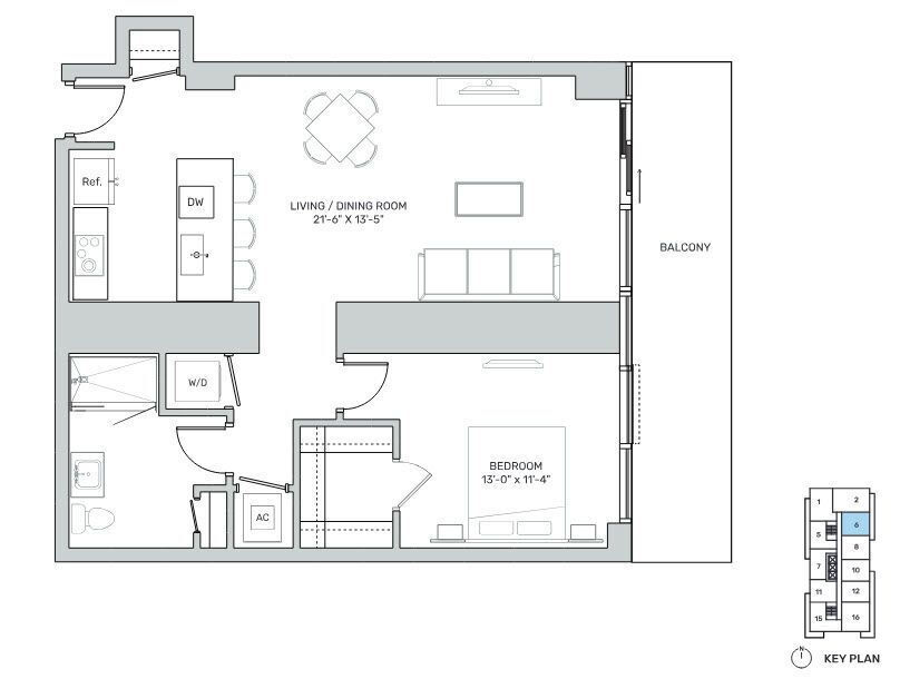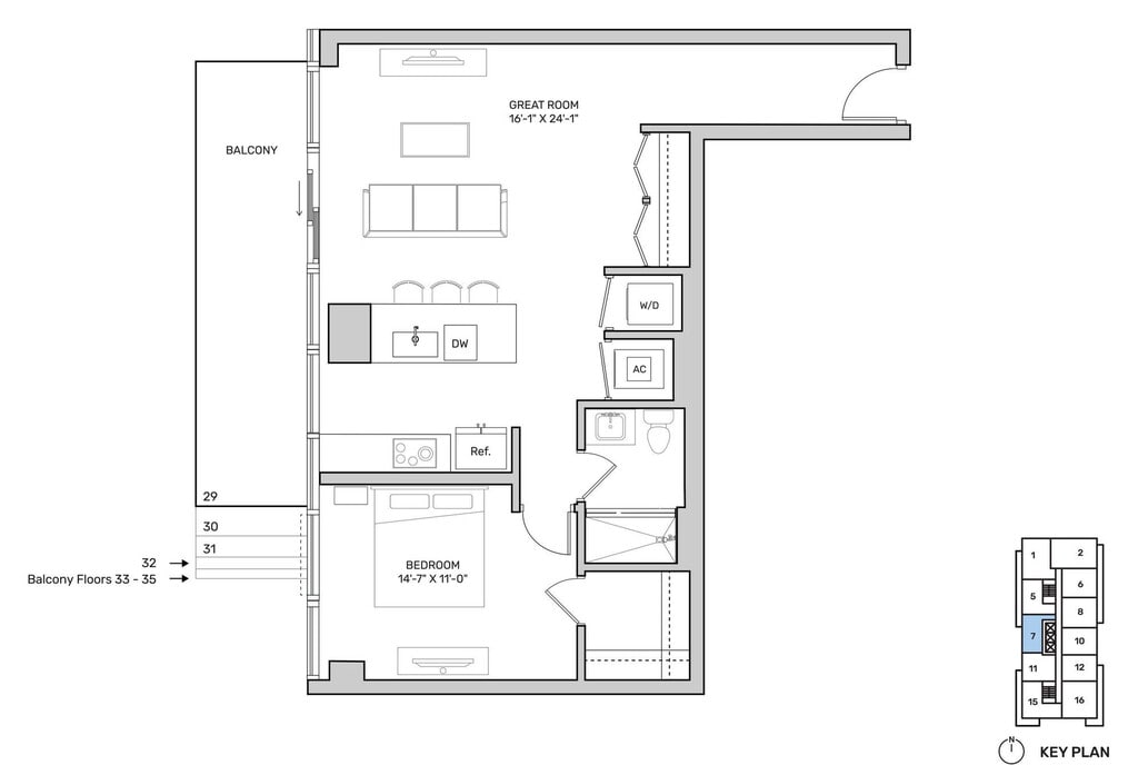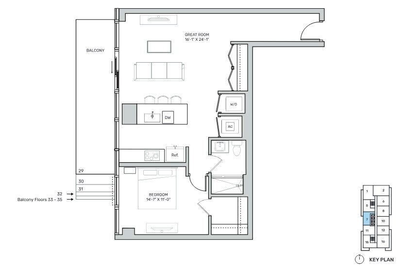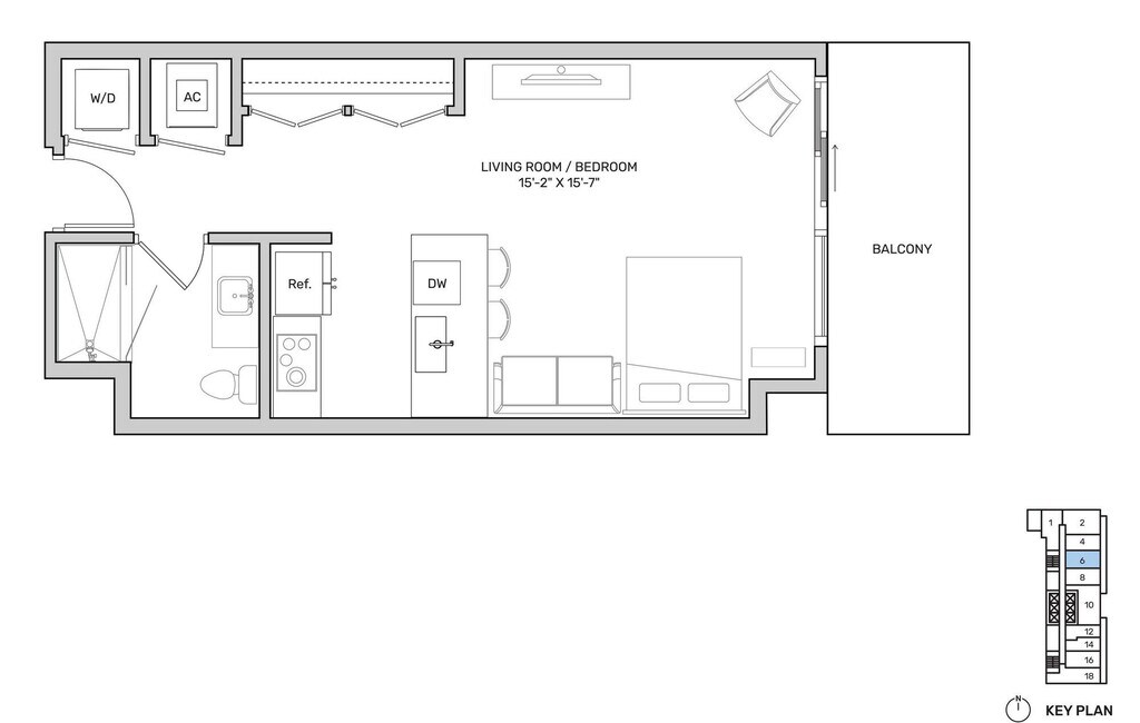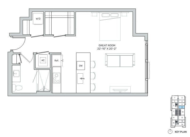 S6 - Plano 1 Unidad de apartamento: 0716Modelo de apartamento: S6$2,530Estudio, 1 Baño, 532 sq ftDisponible AhoraPlano: S1