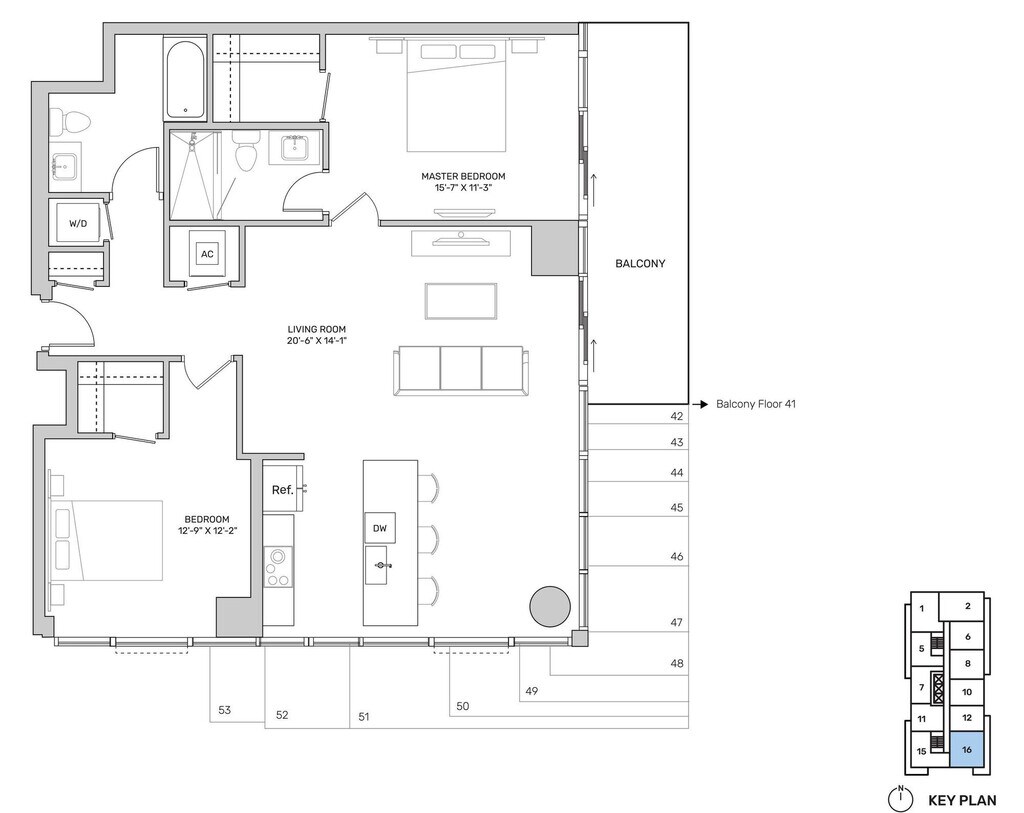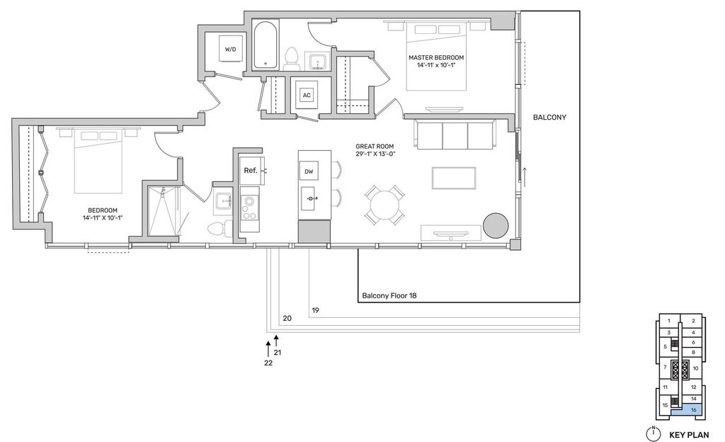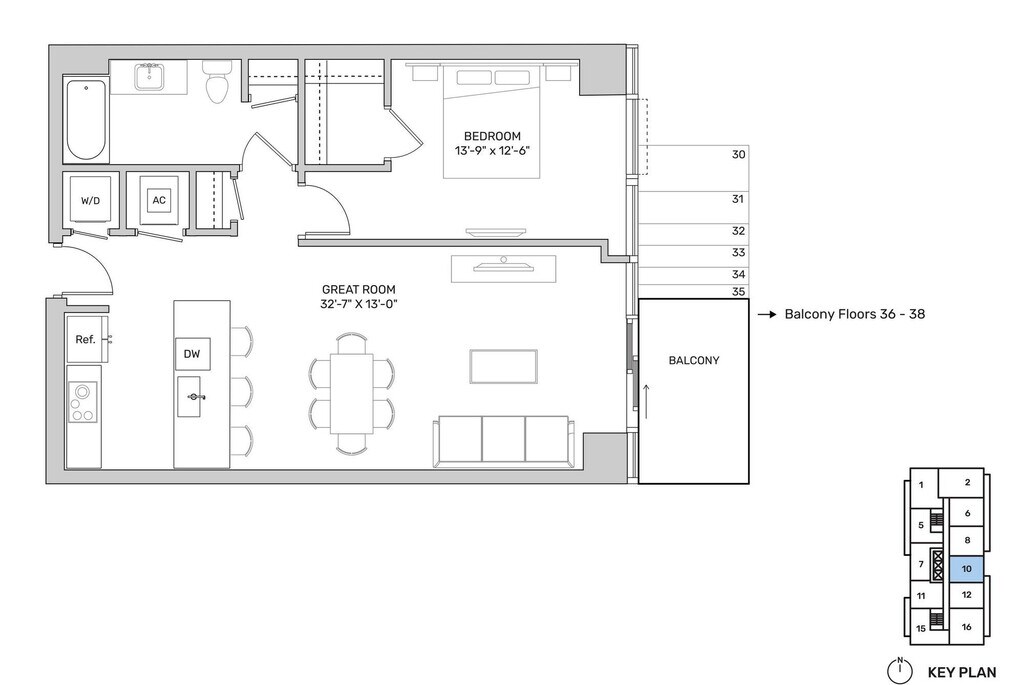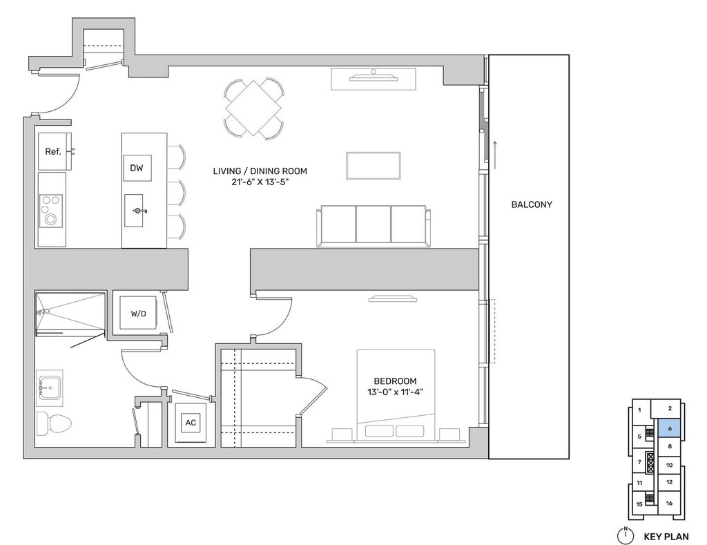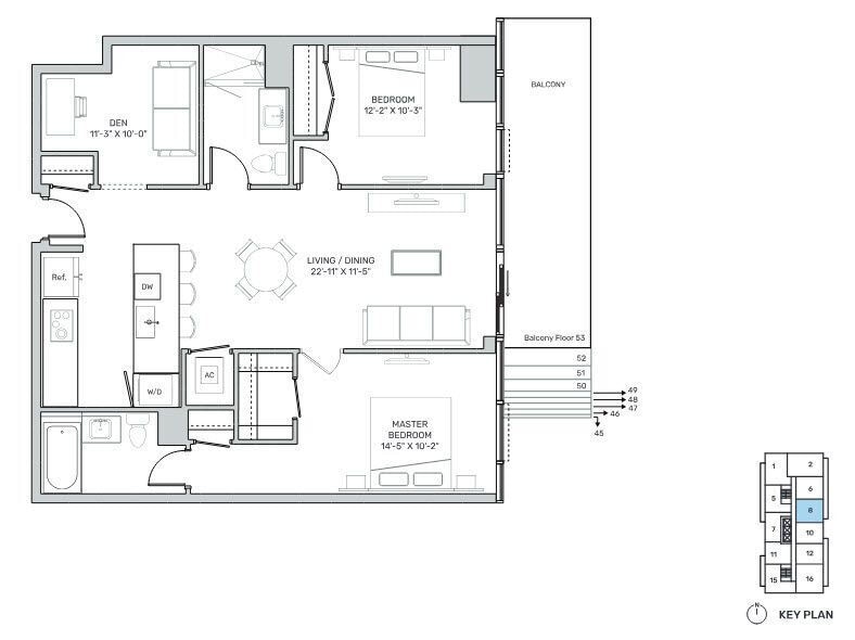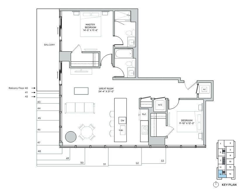 S6 - Plano 1 Unidad de apartamento: 0716Modelo de apartamento: S6$2,530Estudio, 1 Baño, 532 sq ftDisponible AhoraPlano: S1